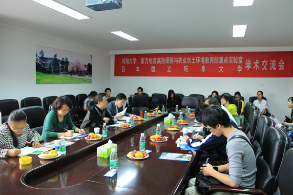 “南方地区高效灌排与农业水土环境教育部重点实验室于2014年9月19日在河海大学水电馆420室与日本国立岐阜大学进行了学术交流研讨。参加会议的有日本国立岐阜大学李富生教授、河海大学性爱直播