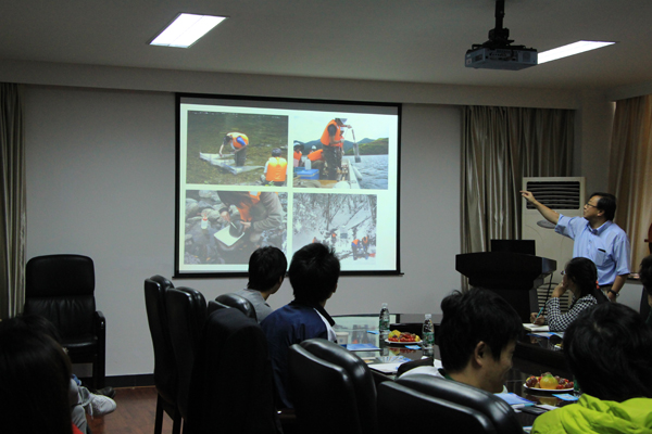 硕士研究生尹超对“微生物纳米球净化污水及水产养殖塘底泥”的相关研究作了介绍。日本国立岐阜大学李教授介绍了岐阜大学概况及所在科研团队的有关情况,并做了流域水环境方面的学术报告。双方师生针对水土环境修复和保护学术问题进行深入的交流探讨,李教授表示了进一步和河海大学开展交流合作和培养学生的意向。