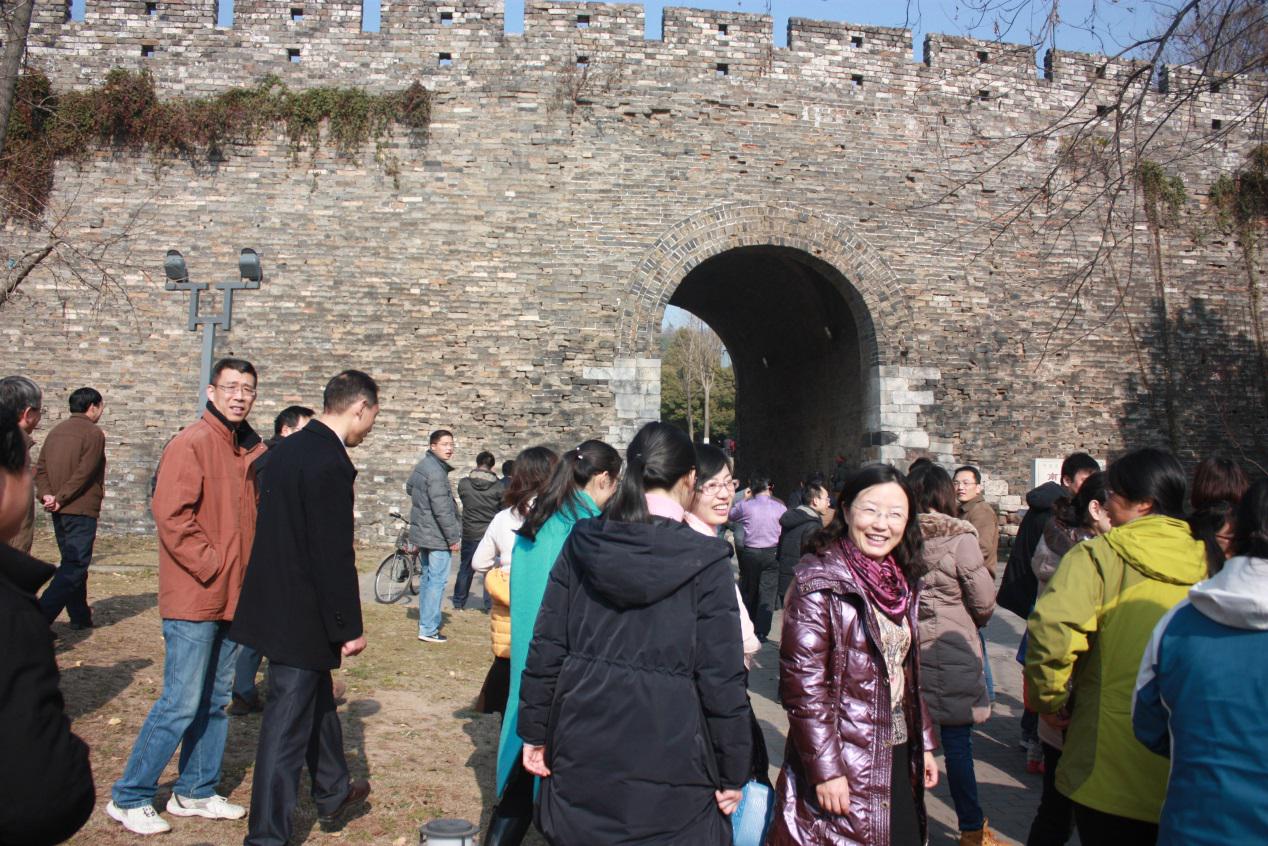 学院顾冲时院长、张展羽书记也加入到行走的行列,和大家边走边聊,不一会就来到石头城下。大家合影留念留念,记录下2014年年底性爱直播 教工们在石头城、阳光下灿烂的笑容。
