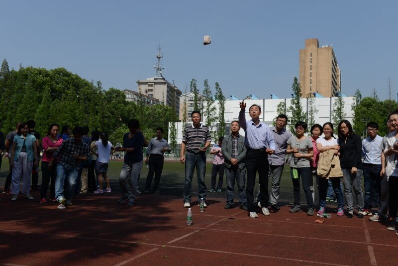 老教师们的长项,经过几分钟的准备活动,轻松的拿到了小组第一;扔沙袋是我们的滑铁卢,得了个零分,但是这不影响我们后面的比赛,跑步是我们学院年轻教师的长项,我们学院的特聘教授辛沛老师第一个出发,他说要以闪电般的速度跑出去,说到做到,当发令声响起,我们的辛教授就冲出去了,跑在了最前面。