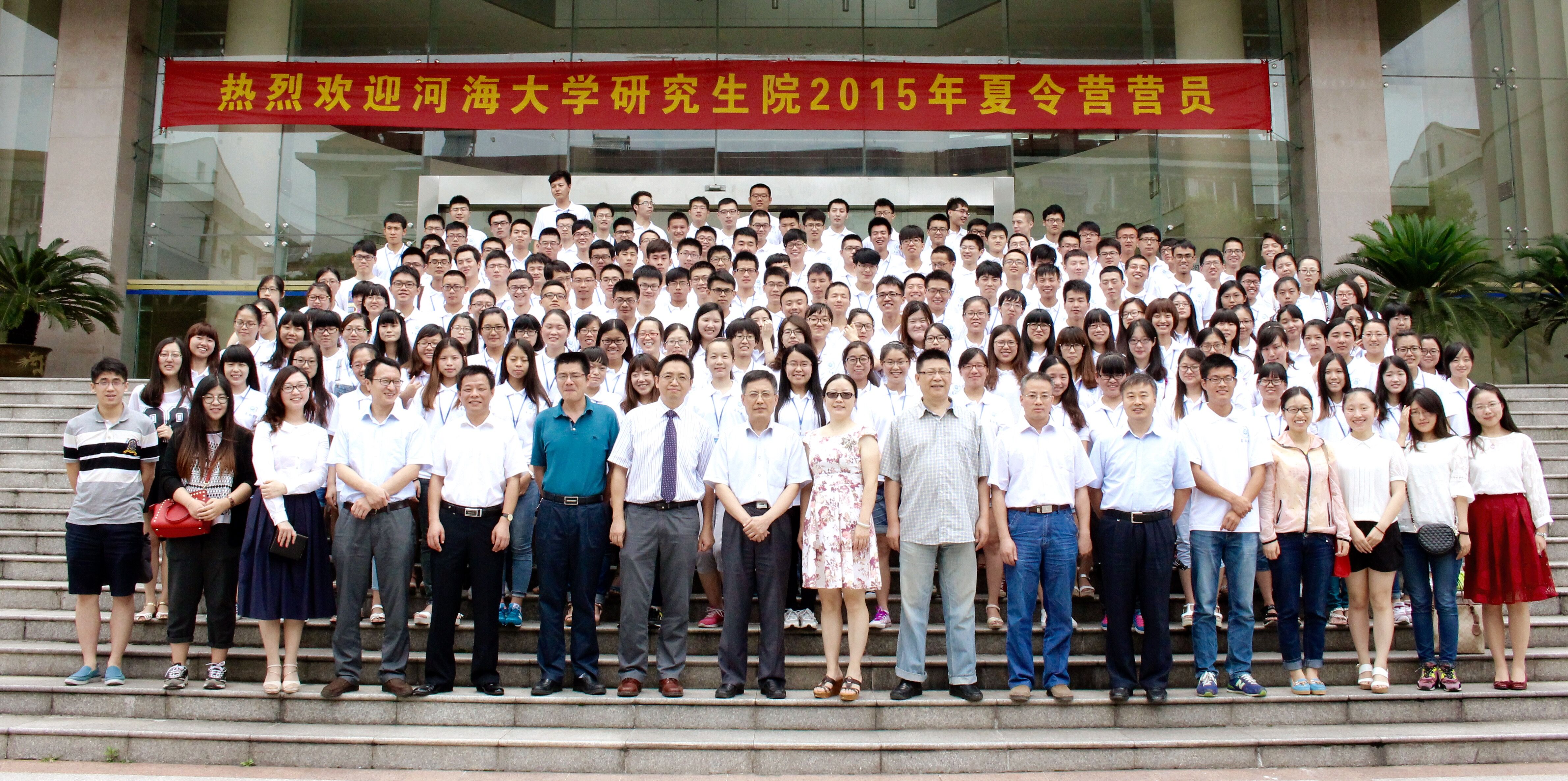 副院长肖洋教授就学院发展历程、学院现状、研究生培养以及研究生职研究生招生情况及政策作了介绍。并就本次夏令营活动安排和专业考核等营员们关心的话题作了解读,勉励营员们积极准备,努力成为河海大学2016级研究生新成员。开营仪式在热烈的气氛中结束,之后,学院领导、老师以及所有学员在我校闻天馆门前合影留念。