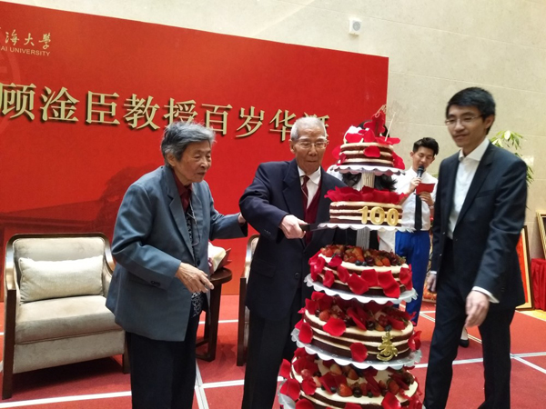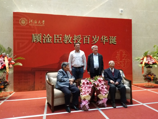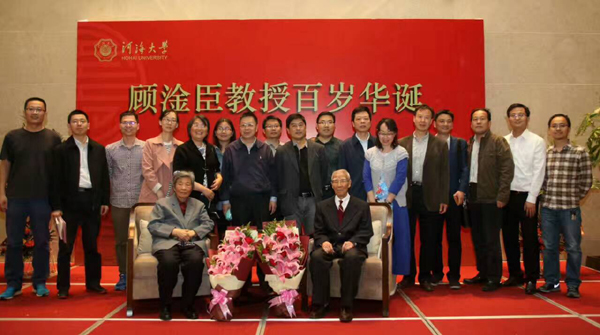 4月18日顾淦臣教授百年华诞在河海大学国际交流中心举行,水工结构研究所的老师们参加了庆典仪式并和顾淦臣夫妇合影。(供稿人:陶艳芝)