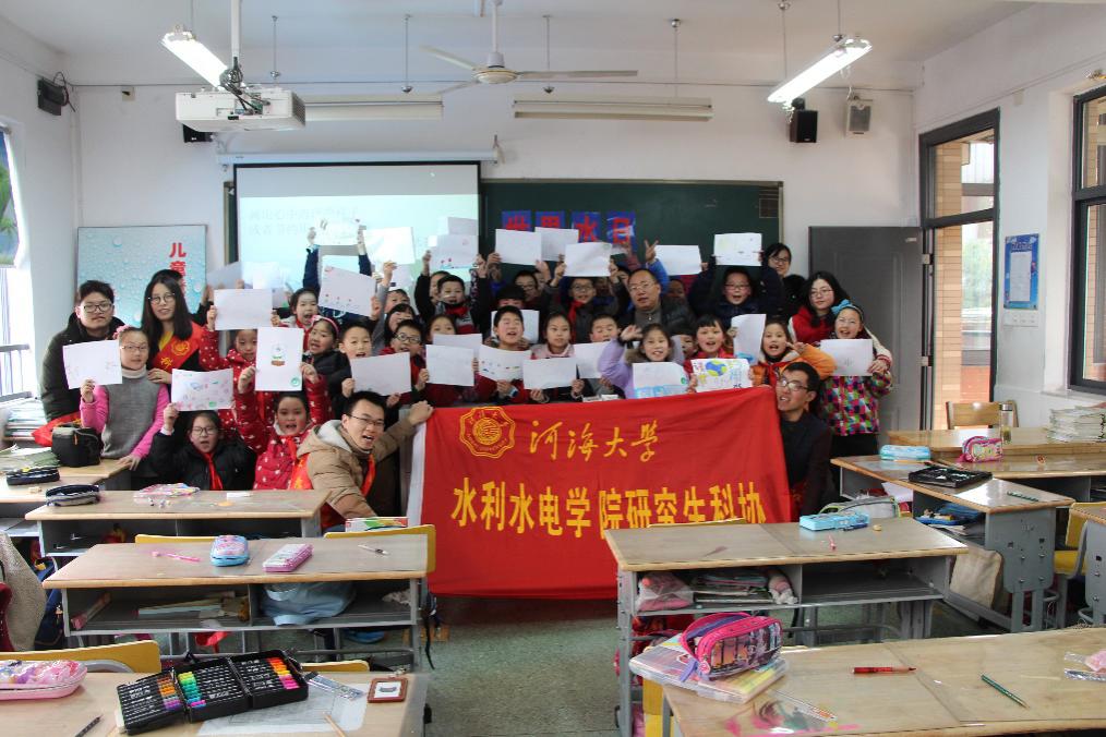 2018年3月22日,为配合河海大学2018年“世界水日”、“中国水周”相关主题活动,水电院研究生科协与南京市供水节水管理处一起,走进五老村小学马府街分校,开展了“大手拉小手,节水进校园”水知识普及教育活动,向马府街小学的小朋友们普及水知识,并提醒全校师生关注身边的“水问题”。