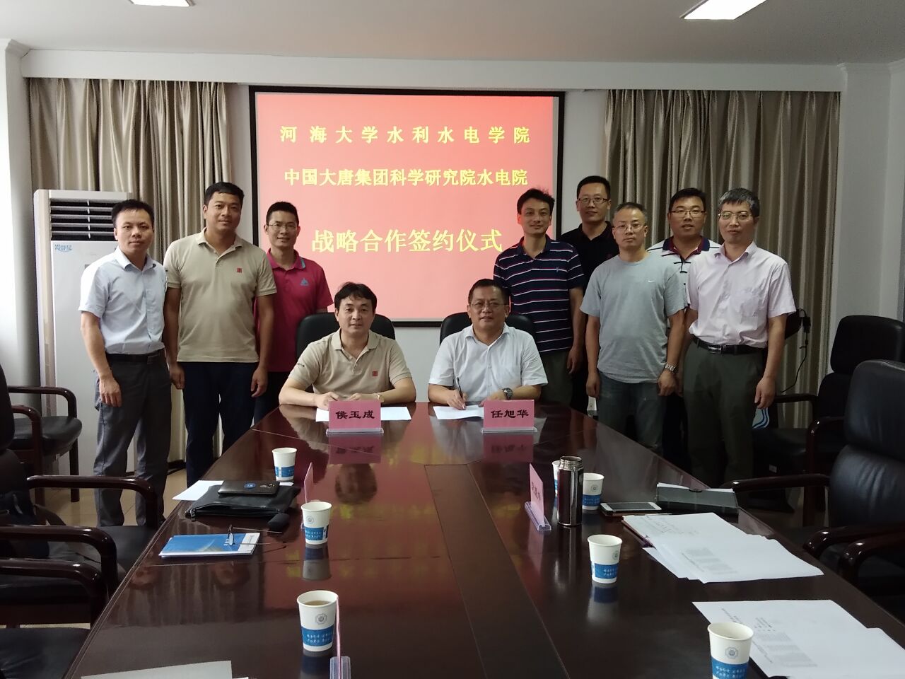 近日,大唐水电科学技术研究院有限公司院长侯玉成、书记杨进一行7人访问了性爱直播 ,并与性爱直播 书记任旭华教授、副院长沈振中教授等就人才培养、产学研合作进行了深入的交流探讨,经过双方友好协商,在人才培养、产学研合作等多方面达成一致,签署了战略合作协议。协议旨在发挥各自优势,促进产--研的深入合作,推进高校的科研成果的转化,同时为企业输送优秀的水利科技人才,为双方发展提供智力和技术支持。水利水电工程研究所所长周建旭教授、水力学及河流动力学研究所所长傅宗甫教授、水工结构工程研究所副所长赵兰浩教授参加了协议签署仪式。