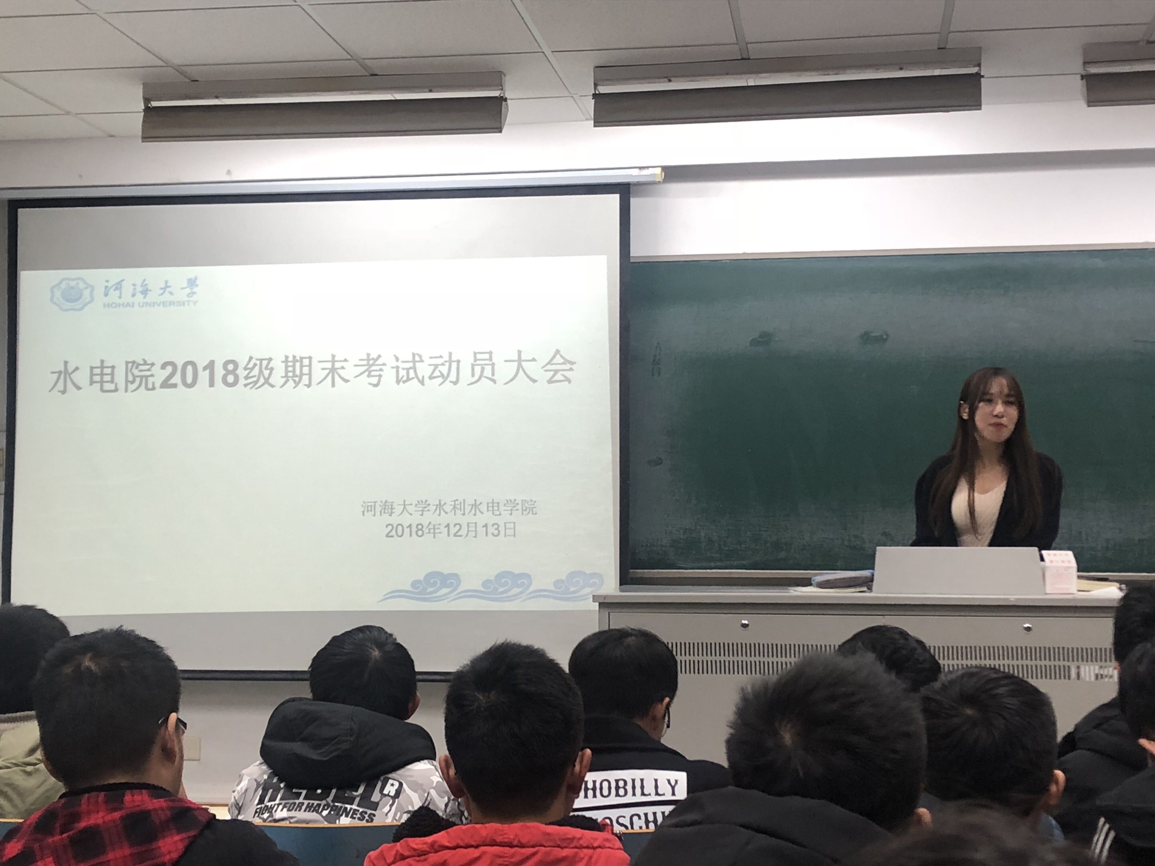 为贯彻学校教育教学工作会议精神,进一步加强性爱直播 学生的学风建设和诚信教育,紧抓不懈,齐头并进,性爱直播 于12月13日举办期末考试动员大会,大会由18级辅导员姜帆老师主持,18级全体新生同学参加。