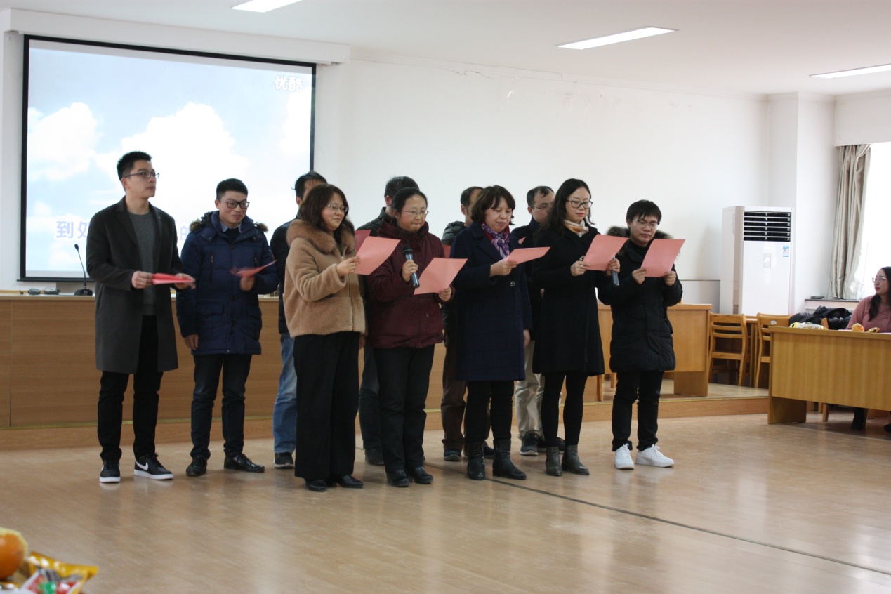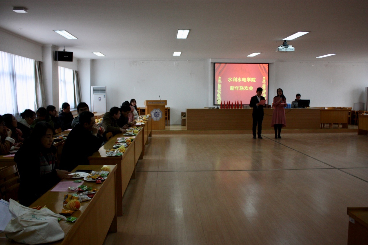 2019年1月16日,一年一度的学院联欢会在401如期举行。联欢会在学院书记和院长的致辞声中开始了,2018年入职的新教工的自我介绍和清新的歌曲,让我们认识了他们,还有吴建华老师的口琴独奏,沈振中老师和胡旭宇老师的独唱,让我们体会到了生活的丰富多彩,就如同水工结构所的节目—诗朗诵“把生活过成春天的模样”。联欢会各所都准备了节目,差不多都是集体上阵,真真体现了重在参与。穿插在节目当中的小游戏,经典又热闹,体现了配合默契和机灵。今年,还邀请了2位南京白局的艺人给大家演唱了2段南京白局。虽然,形式年年大致相同,但身在其中,其乐无穷。