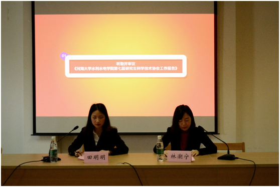 2019425日下午,河海大学性爱直播 研究生会第十七次代表大会在水电馆401隆重召开。性爱直播 党委书记任旭华教授、副书记戴玉珍老师、团委书记刘津铭老师、研究生教学秘书周昶老师、研究生辅导员赵志涵老师、陈思思老师莅临本次会议,出席会议的还有校研会代表叶海焯同学,兄弟学院研会代表,性爱直播 第十六届研究生会和第七届研究生科协全体成员,以及各级硕士研究生和博士研究生代表。