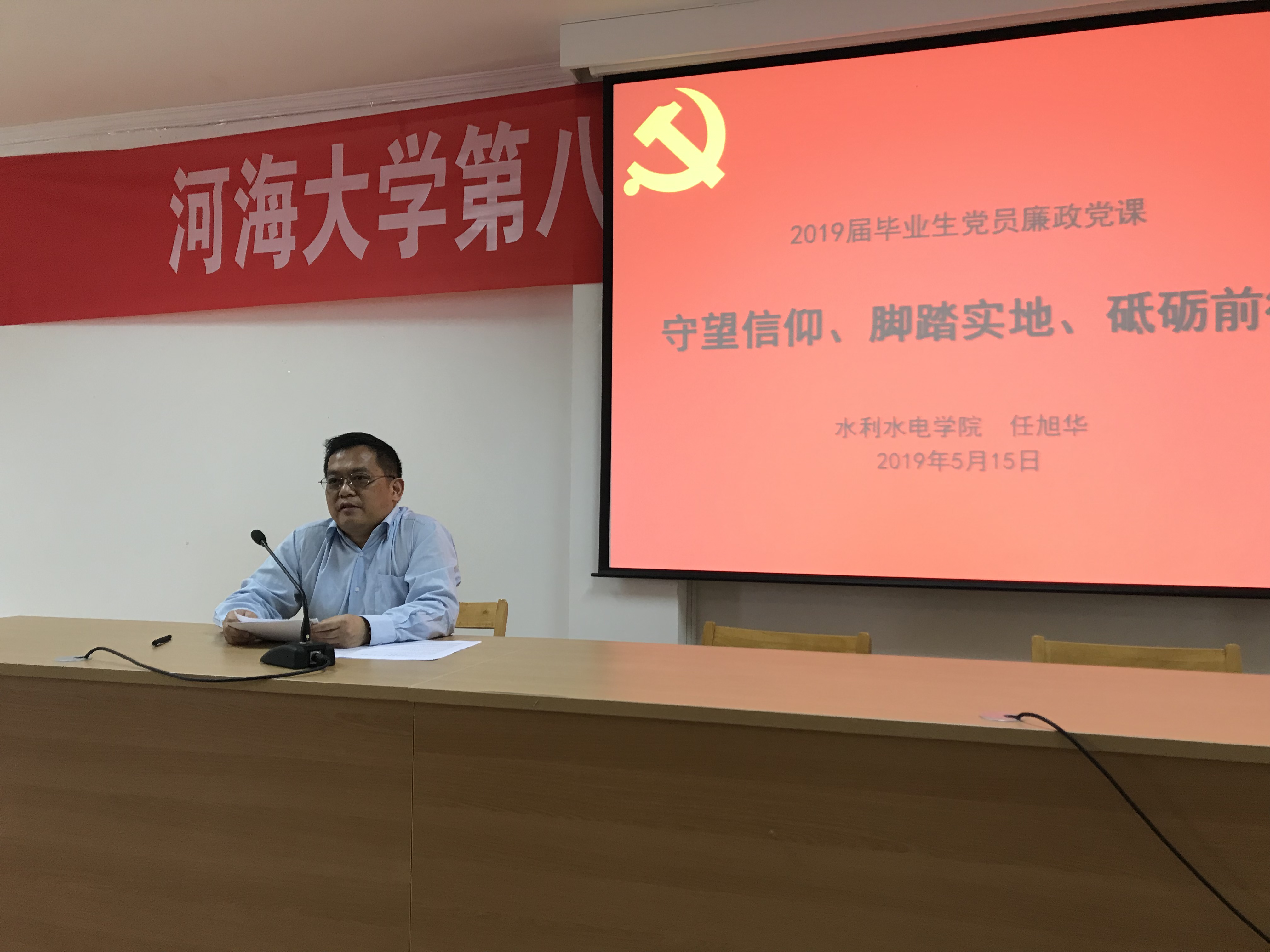 2019届毕业生即将离开母校,近日,学院党委任旭华书记给全体毕业生党员上了一堂题为“守望信仰、脚踏实地、砥砺前行”的廉政党课。