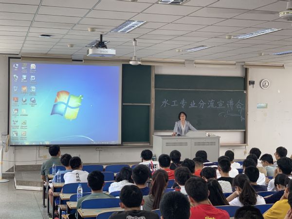 王润英老师从专业分流工作流程、水建管方向设置背景、特点以及毕业去向四个方面对同学们做了详细且生动的介绍,通过细致的比较及生动形象的实例让同学们进一步了解了水工与水建管方向的不同之处;刘永强老师就同学们提出的考研、保研、就业等方面的疑问进行了耐心细致的解答,使得同学们对专业分流有了更加全面的认识;罗玉龙老师希望同学们选择专业方向时,要充分了解个人兴趣,志存高远,将理想、兴趣和学院优势学科结合起来,做出适合自己的选择。