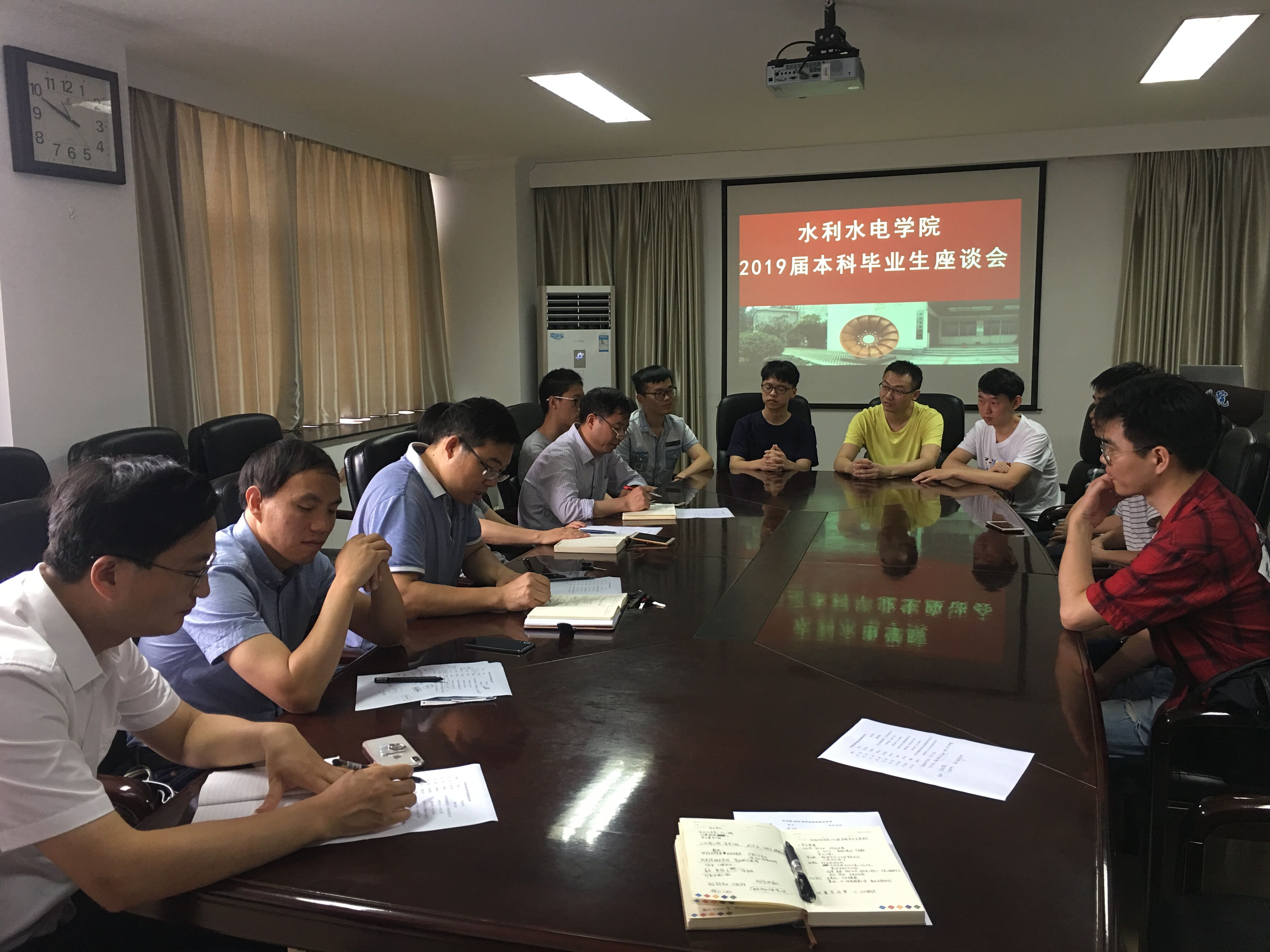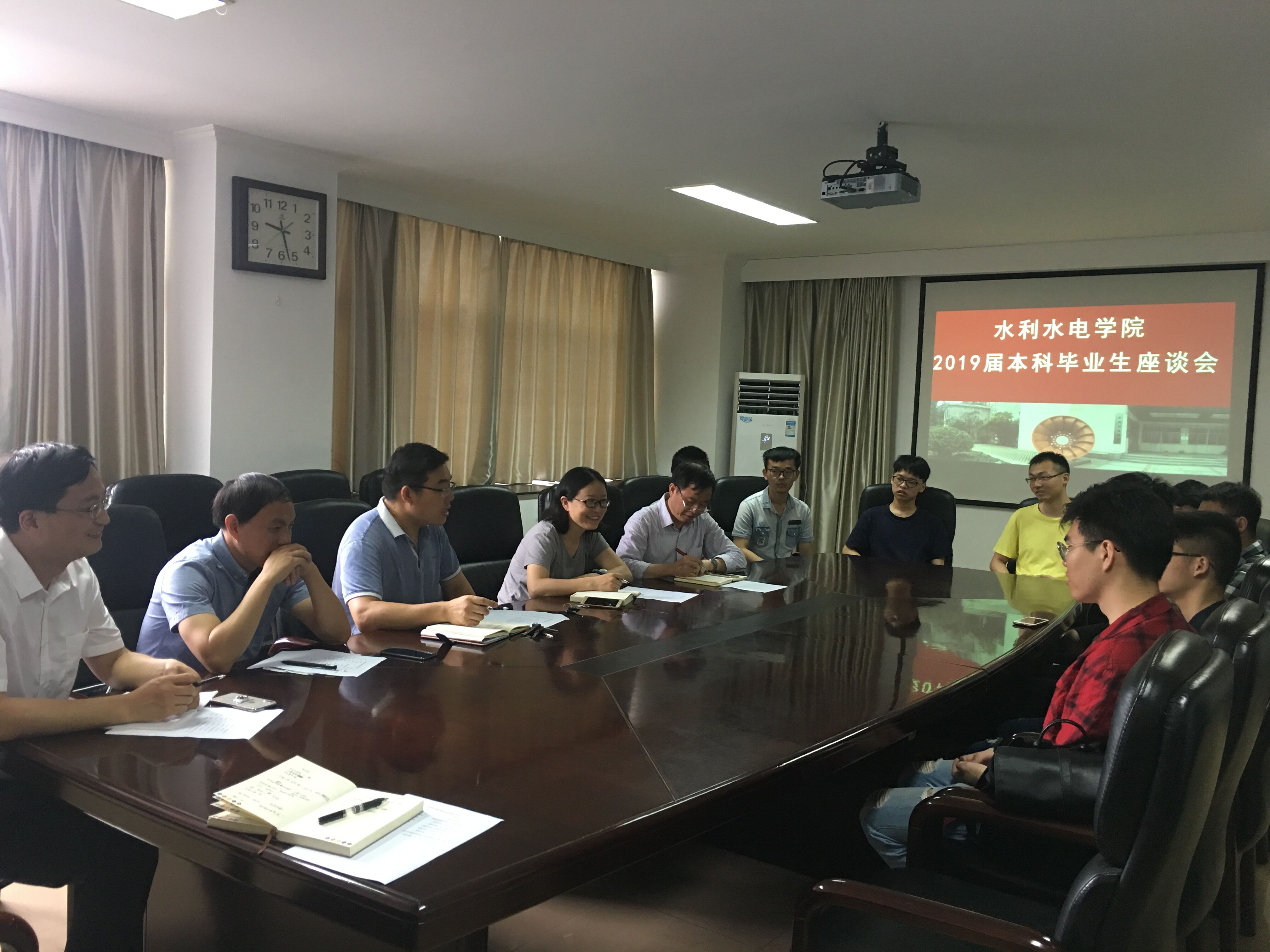 6月18日,性爱直播 举行2019届本科毕业生代表座谈会。会议由学院党委副书记戴玉珍主持,学院副院长张继勋、水电系主任蔡付林、副主任岑威钧、专业办主任徐磊,15、16级辅导员和2019届本科毕业生代表参会。
