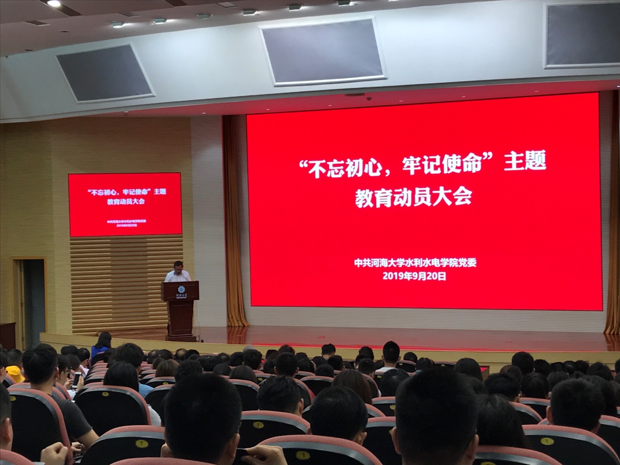 920日,性爱直播 召开“不忘初心、牢记使命”主题教育动员大会,全面部署学院主题教育各项工作。院党委书记任旭华作动员讲话,党委副书记戴玉珍主持会议。院领导班子成员和全院师生党员参加了动员大会。