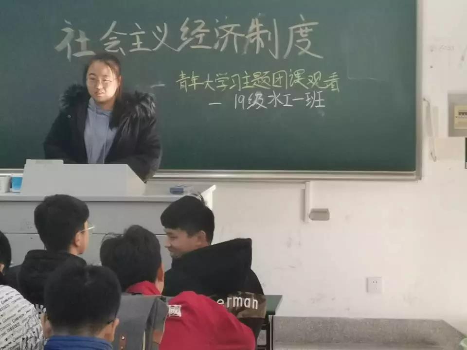 为紧跟党的步伐,坚定党的领导,提高青年团员的历史责任感和时代使命感,水电院19级水工一班全体成员于2019年12月4日下午4时在致用207举行了集体团课学习活动,共同学习“社会主义基本经济制度”的青年大学习主题团课。同学们随主持人共同走进江苏盐城——新四军重建军旧址,感悟时代变革下社会生活的变迁。