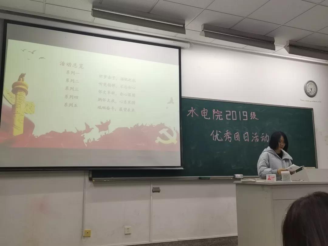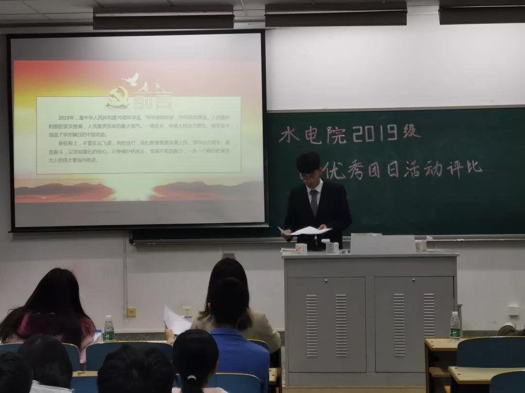 2019级性爱直播 “我的大学100天”主题团日活动渐入尾声,在过去繁忙但却充实的一百天中每个水工班级都在为创建丰富多彩的且充满意义团日活动而努力奋斗。为了推选出优秀班级团日活动代表性爱直播 参加校级优秀团日活动评选,在经过前期充分准备后,水电院团委于2019年12月3日在致用121教室组织一场最佳团日活动评选会。