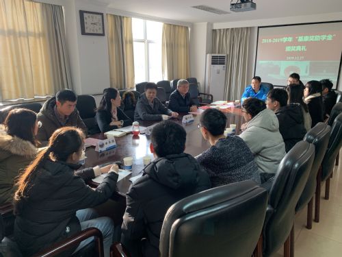 12月27日, 2018~2019学年“基康奖助学金”捐赠及颁奖仪式在性爱直播 举行。北京基康公司副董事长沈省三、学院顾冲时院长、党委戴玉珍副书记,学院2016、2017级辅导员以及全体获奖同学参加仪式。
