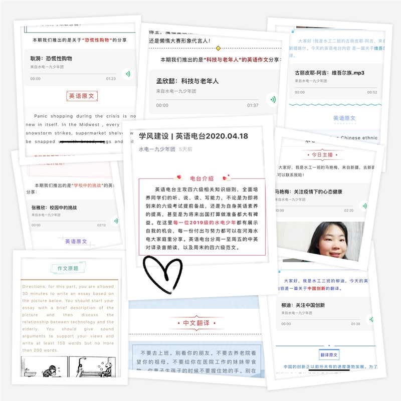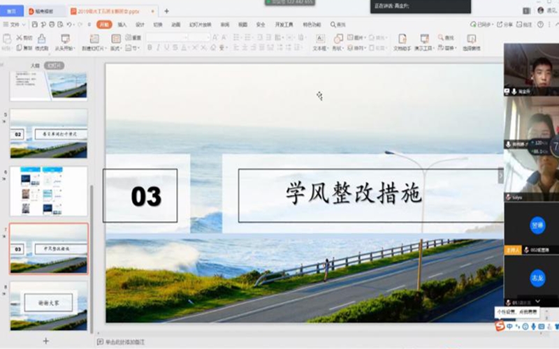 在班级学风整改方案阶段,全年级通过番茄To Do软件进行线上晚自习,1班设立一对多建立学习群,2班开设英语电台每天分享英语四六级摘抄,3班开展一对一线上答疑,4班组建学习小组,5班要求单词打卡及心灵短句分享等等。经过近2周的坚持,很多措施已初见成效。