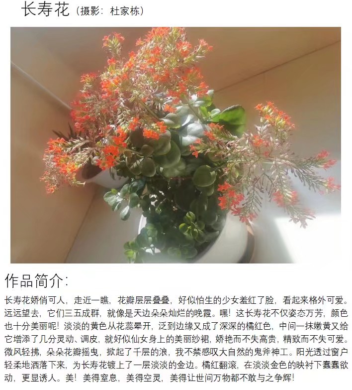 在完成摄影作品的过程中,有同学选择了家乡的芦苇寄托着对于南京、对于河海的想念,有人在选择了清晨日出一线,刹那间的光影流连间仿佛也将我们当好的青春年华也一同留在了此刻,还有的同学别出心裁,索性选择了桌上简简单单的盆栽作了主角……