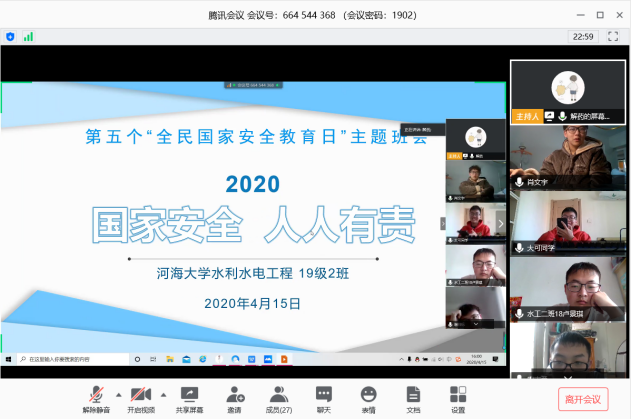 为提高大学生对国家安全的认识,建立一套理性的,符合时代特征和国家需求的教育框架,进而准确全面认识国家安全问题,树立正确的国家利益观。性爱直播 2019级的同学们以班级为单位,于2020年4月15日在线上开展了“同上一堂国家安全教育课”主题云班会,一起交流分享观看“同上一堂国家安全教育课”的感悟。