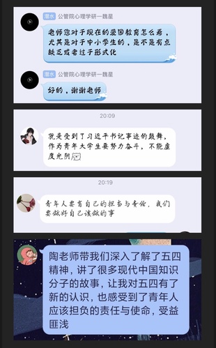 回顾五四历史,展望青春未来,通过此次讲座,坚定了同学们爱国爱党的信念、明确了作为青年应有的使命担当。同学们纷纷表示,作为新时代的青年,一定敢于担当、勇于奋斗,努力成为具有责任意识和创新精神的建设者,不辜负习近平总书记对广大青年的嘱托。奋斗是青春最亮丽的底色,让我们一起做新时代的奋斗者,以青春之我,创建青春中国!(刘津铭)