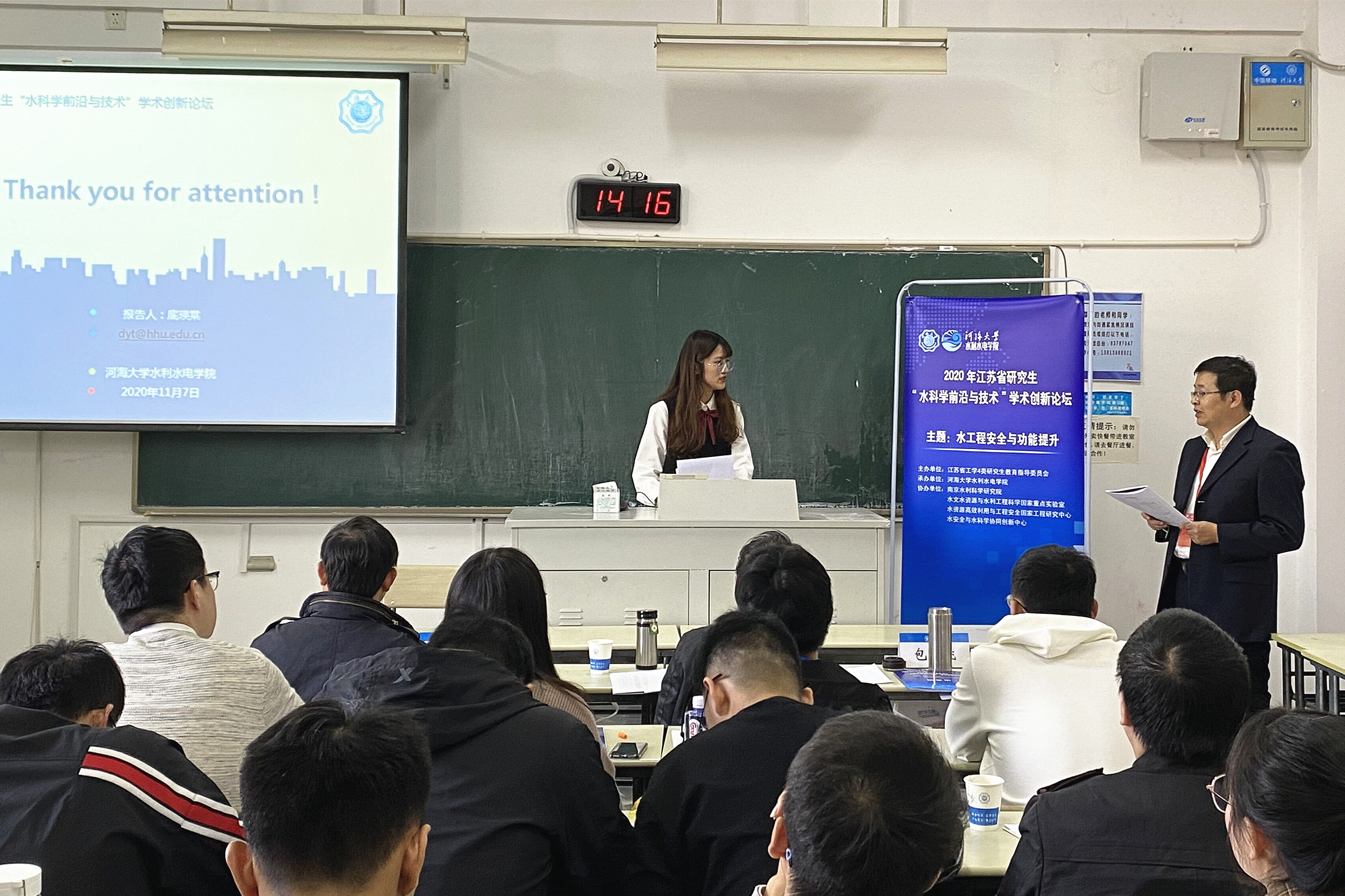 2020年江苏省研究生“水科学前沿与技术”学术创新论坛,由江苏省工学4类研究生教育指导委员会主办,河海大学性爱直播 承办,南京水利科学研究院、水文水资源与水利工程科学国家重点实验室、水资源高效利用与工程安全国家工程研究中心、水安全与水科学省部共建协同创新中心等单位共同协办。论坛旨在加强水利工程、土木工程、环境科学、农业工程、力学、计算机科学与技术等学科之间的学术思想交流,促进多学科研究思想和研究办法的交叉融合,推动广大研究生同学在水科学领域科研工作的开展。戴会超教授应邀作《三峡枢纽工程与生态调度》报告,王进廷教授应邀作《高混凝土坝抗震安全关键问题与研究前沿》报告,陈求稳研究员应邀作《澜沧江梯级开发对关键生源要素循环的影响》报告,张璐璐教授应邀作《土体空间变异性表征的数据融合和参数反分析研究》报告,陈波青年教授应邀作《基于智能骨料的混凝土坝裂缝监测机理与转异诊断方法》报告。