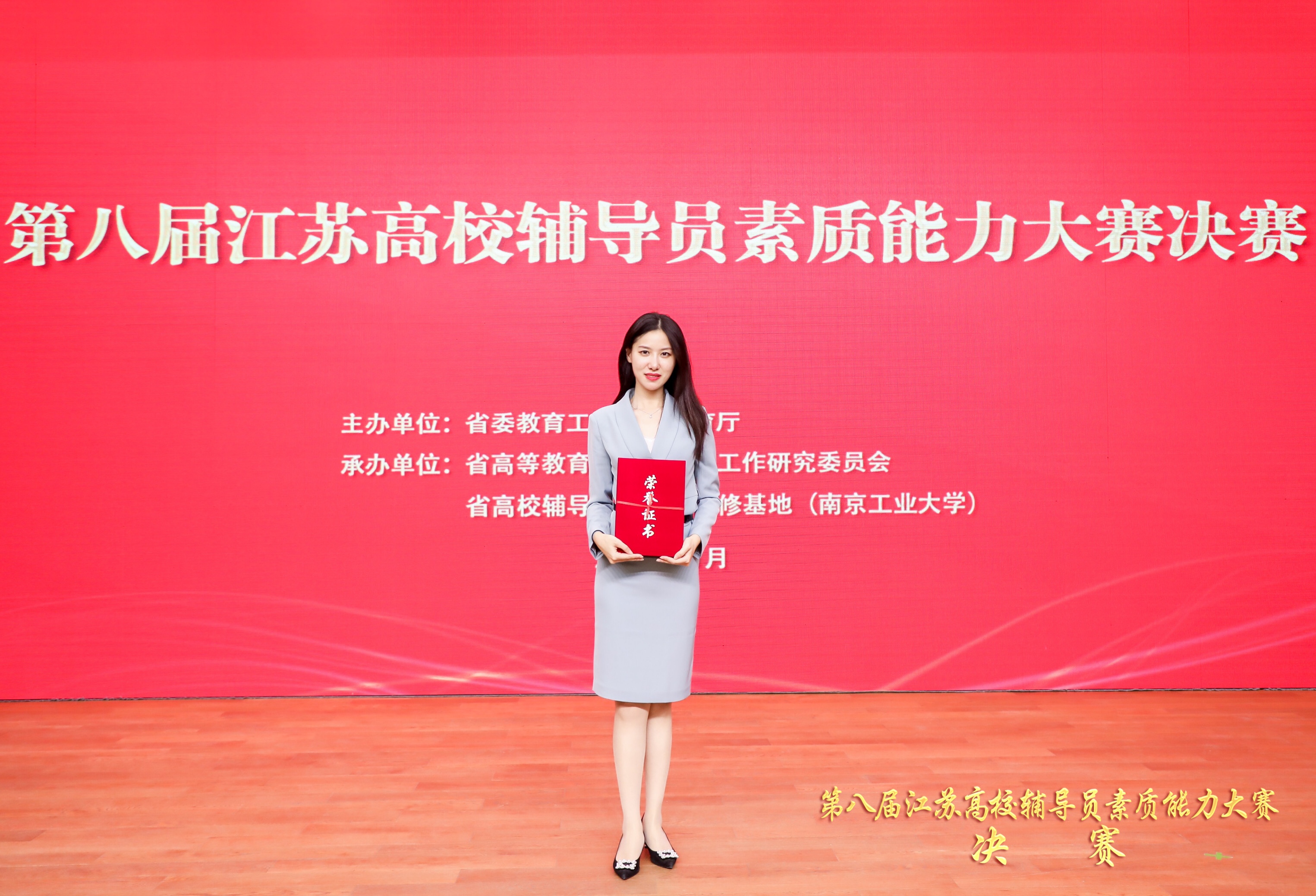 11月27日至28日,第八届江苏高校辅导员素质能力大赛决赛在南京工业大学成功举办。性爱直播 2018级辅导员姜帆老师,与来自全省40所高校的优秀辅导员同台竞技、尽展风华,以总分第二的好成绩荣获一等奖!