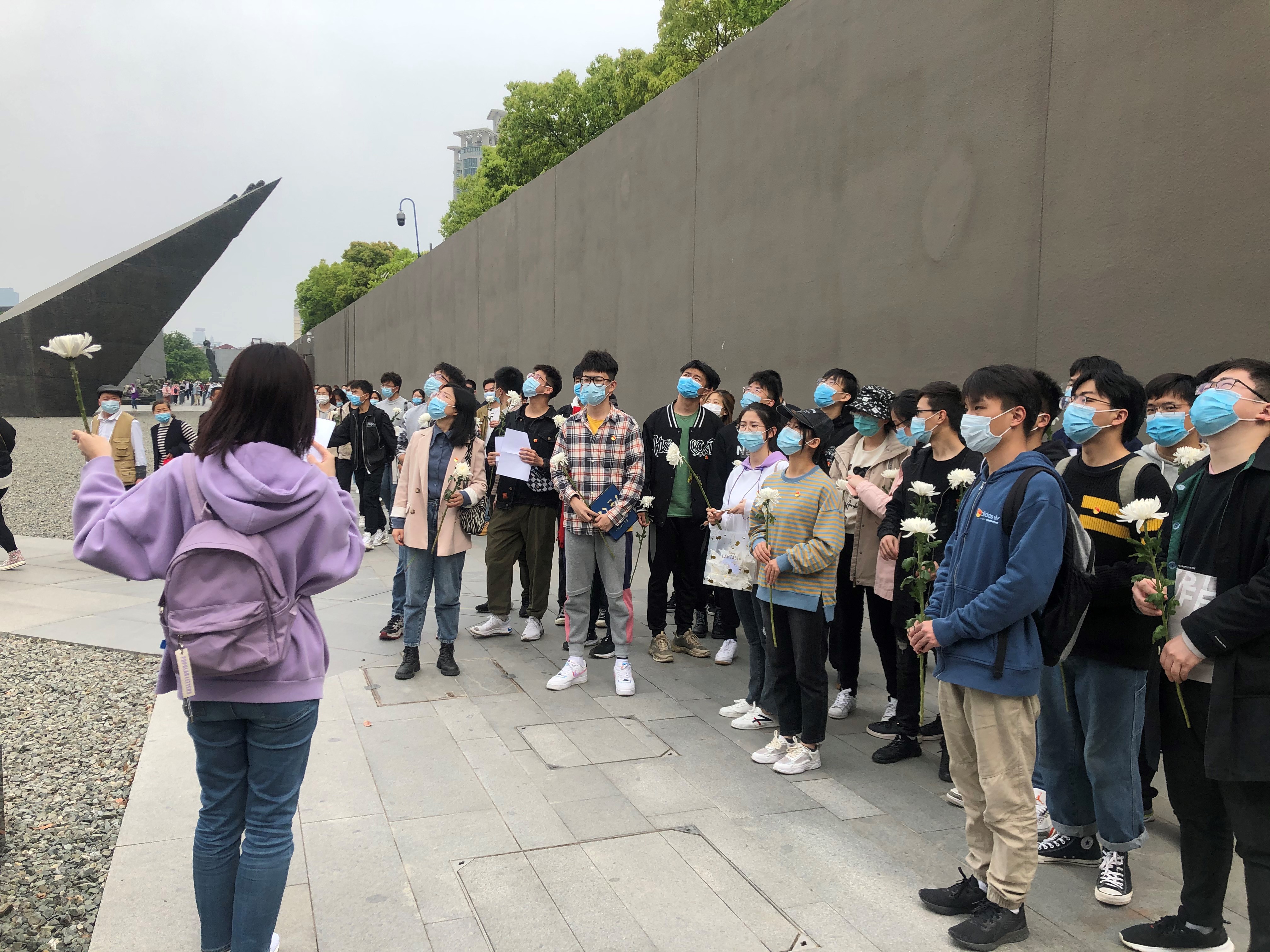 在和平广场,每位支部成员写寄语托哀思、折纸鹤传祝愿、献菊花表缅怀,并随机参访参观游客,共情传递。最后,全体支部成员齐声诵读《南京大屠杀公祭》:“如今,南京的天是明亮的,是明朗的,因为奋斗的中国人让中华崛起,一切的屈辱、一切的黑暗,都已成为过去,和平,像阳光、像雨露,温暖滋润着中华大地,但我们永远把历史谨记,残忍的屠杀,刻骨铭心,我们会永远记住战争的惨痛教训。珍惜和平!维护和平!”