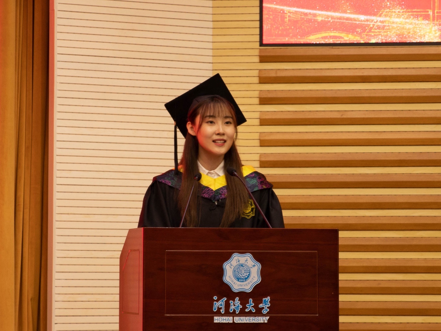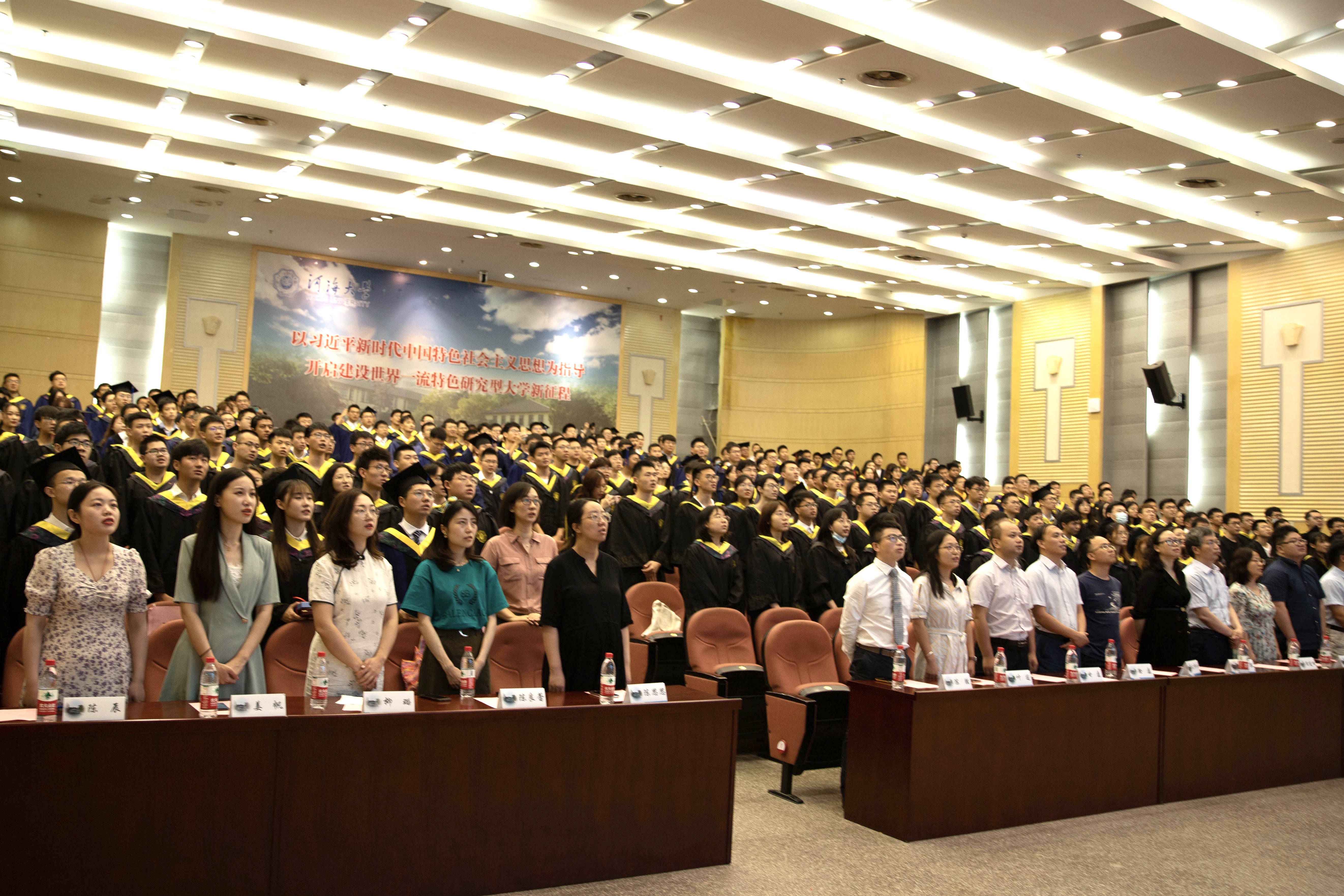 毕业研究生代表黄鹏华、本科毕业生代表周冰逸表达了对母校的依依惜别之情和对老师的感激之情他们表示将以只争朝夕的精神投身新时代,一展河海水利人的智慧与风采