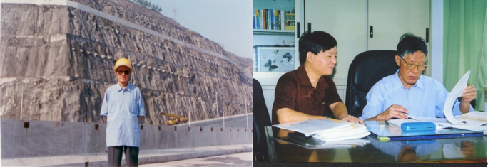 吴院士在三峡临时船闸下游高边坡指导工作 吴院士和顾老师在一起工作