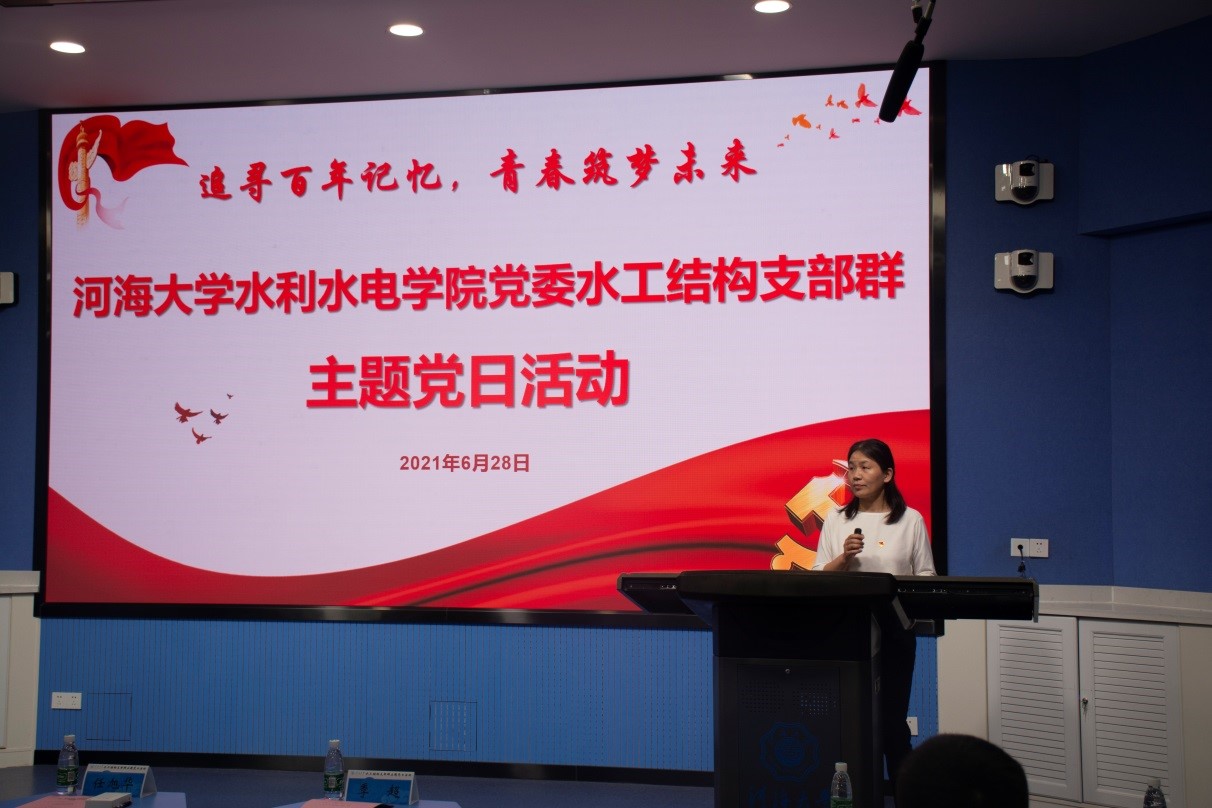 6月28日,性爱直播 党委水工结构教师-学生支部群隆重举行“追寻百年记忆,青春筑梦未来”主题党日活动。活动由性爱直播 水工结构研究所教师党支部主办,性爱直播 水工结构工程博士生第二党支部承办。学院党委书记任旭华、校党委组织部季超、学院党委组织员胡瑞媛、水力学与河流动力学研究所教师党支部书记闫静、水利水电工程研究所教师党支部书记周领出席活动。水电院党委水工结构支部群共11个党支部的全体成员参加本次活动。活动由水工结构研究所教师党支部副书记周兰庭老师主持。