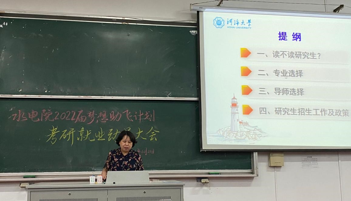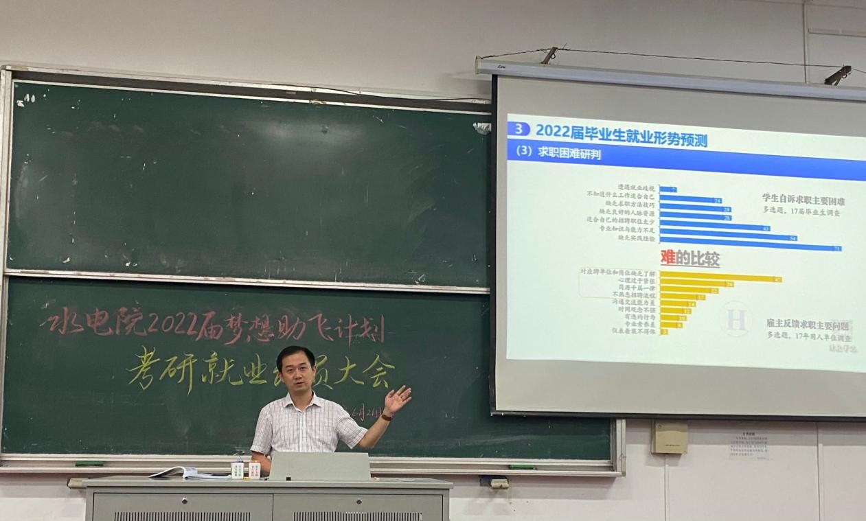 6月21日性爱直播 召开了“水电院2022届毕业生梦想助飞计划”考研就业动员大会,性爱直播 副院长方国华、性爱直播 党委副书记王方、性爱直播 学科学位秘书柳璐出席会议,2018级本科生全体参加会议。大会由性爱直播 2018级本科生辅导员姜帆主持。