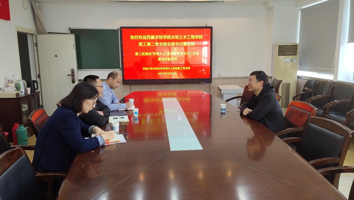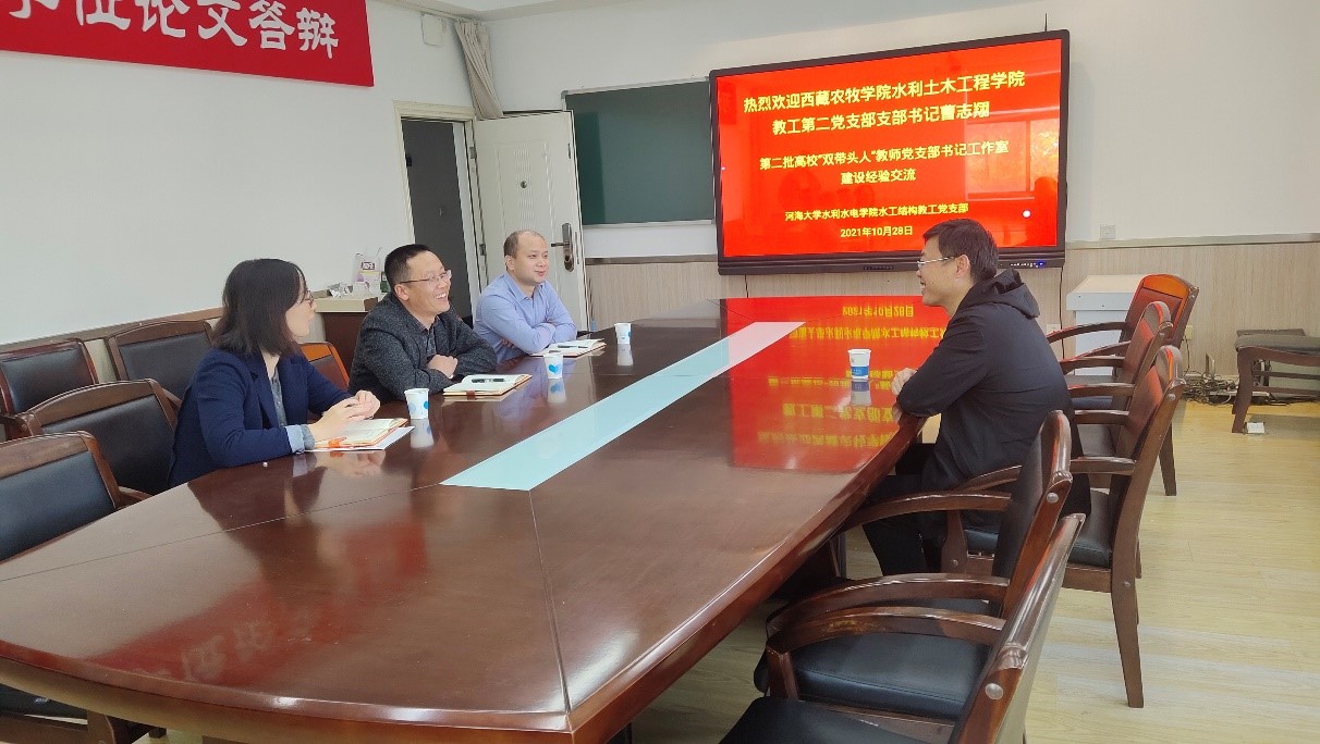 10月28日,性爱直播 水工结构研究所教师党支部与西藏农牧学院水利土木工程学院第二教师党支部开展结对共建。西藏农牧学院土木水利学院第二教师党支部书记曹志翔,河海大学性爱直播 水工所党支部书记赵兰浩、组织委员甘磊、宣传委员张汉云参加会议。