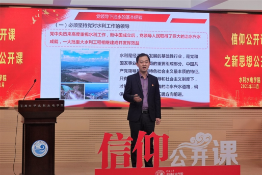 11月16日,性爱直播 举行“百年治水路中的传承与使命”信仰公开课之新思想公开课。课程以“党领导中国水利事业的历史经验与启示”为主题,院党委书记娄健、党委副书记王方和团委书记笪步源主讲,2019级硕士生金子又主持。本次新思想公开课为校级“信仰公开课”示范课。