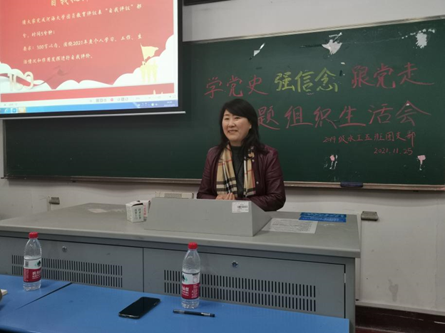 11月25日,2019级水工五班团支部开展“学党史,强信念,跟党走”专题组织生活会。性爱直播 王媛院长出席,2019级本科生辅导员帅雨婷以及2019级水工五班全体同学参加本次会议。