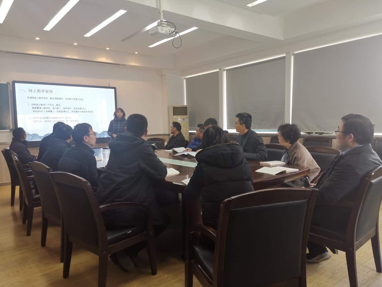 本次教研活动的主题为:(1)强强联合,进一步发挥特聘教授/专家在线上线下混合式教学中的作用;(2)群策群力,争取本课程线上教学工作再上新台阶。盛金保教高首先分享了参与“水工建筑物”课程教学5年来,利用“水工建筑物”课程线上+线下混合授课方式,将水库大坝先进的监测和检测技术、国家和水利行业最新的技术标准与技术规范融入教学过程的心得与体会;随后由刘晓青老师介绍“国家级在线开放课程重点监测数据”中对本课程线上教学的任务要求,并说明了本学期“水工建筑物”校内SPOC课程的具体安排。
