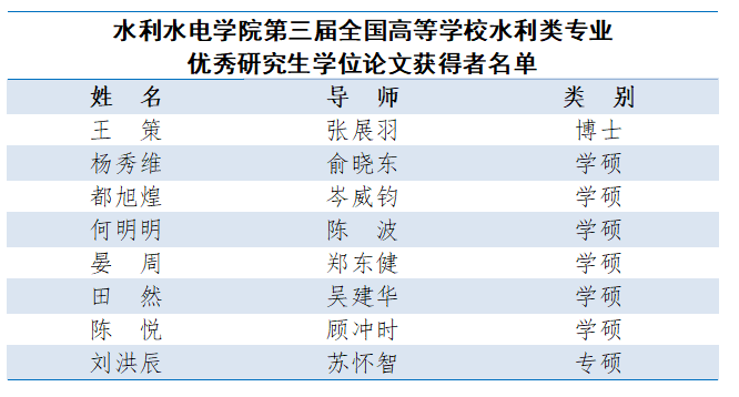 喜报 | 性爱直播 研究生学位论文获评 全国高等学校水利类专业优秀研究生学位论文