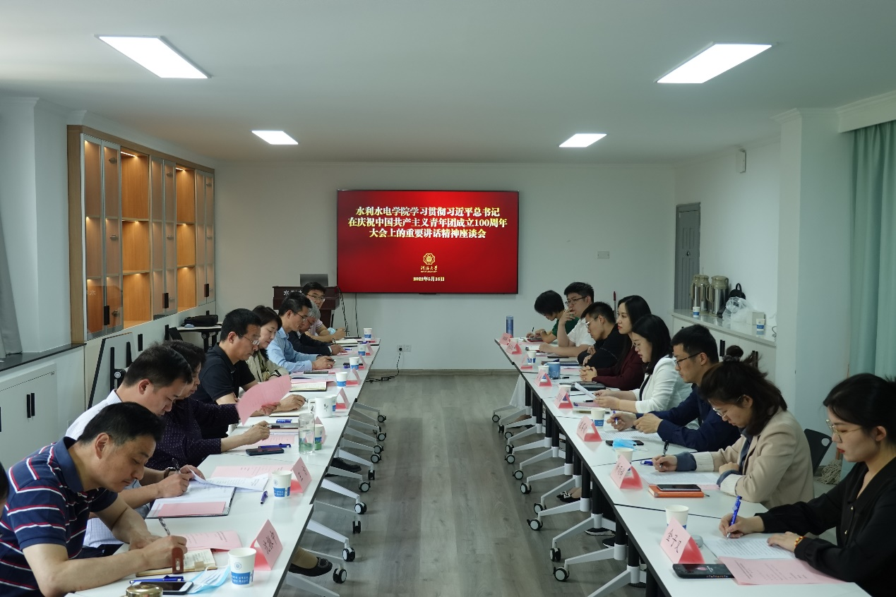 院长王媛指出,习近平总书记在庆祝中国共产主义青年团成立100周年大会上的重要讲话,全面回顾了百年来共青团坚定不移听党话、跟党走的青春历程,充分肯定共青团在党的领导下、团结带领一代代团员青年为实现中华民族伟大复兴中国梦所作出的重要贡献,深刻总结共青团和青年工作的历史经验。她就学习贯彻习近平总书记重要讲话精神对大家提出三点希望:一要始终爱党爱国,坚定理想信念。新时代青年要更加紧密地团结在以习近平同志为核心的党中央周围,跑出水电青年的最好成绩。二要始终刻苦学习,练就过硬本领。不负重托,不辱使命,把祖国水利事业建设作为青春奋斗的鲜明标识。三要始终敢于斗争、勇于攻坚克难。成长为有理想、敢担当、能吃苦、肯奋斗的新时代青年。