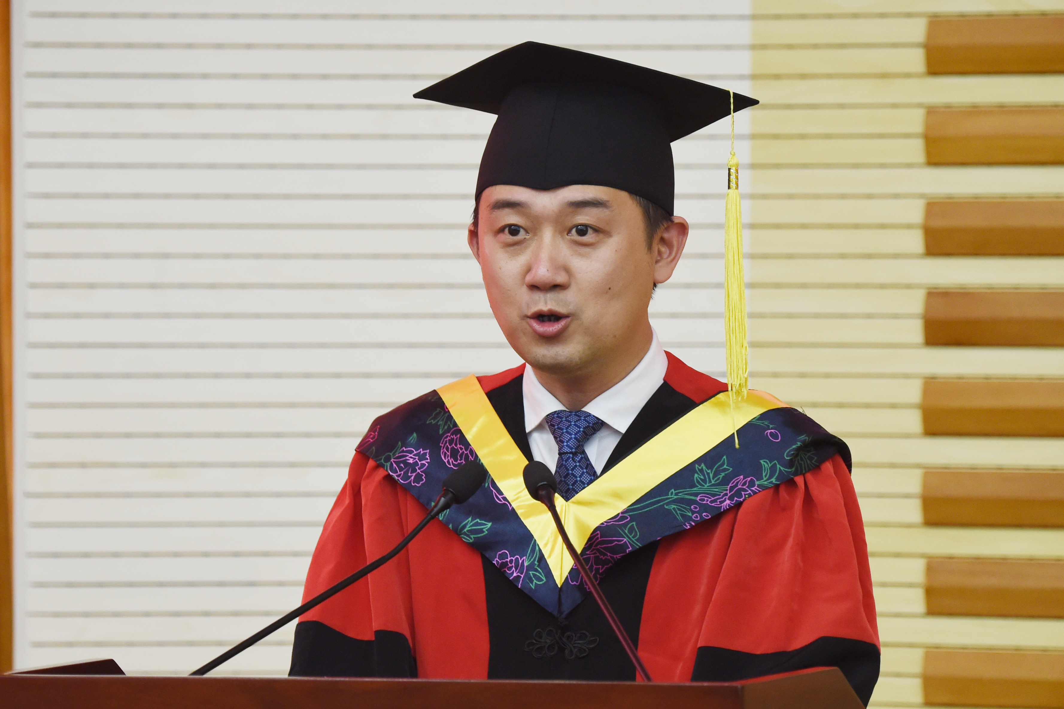 班导师代表黄显峰老师表达了对毕业生们最热烈的祝贺,勉励毕业生自觉地从“水”的精神中汲取前进的动力,努力成为知识与能力兼备、智商与情商兼备、素质与作风兼备的栋梁之材。