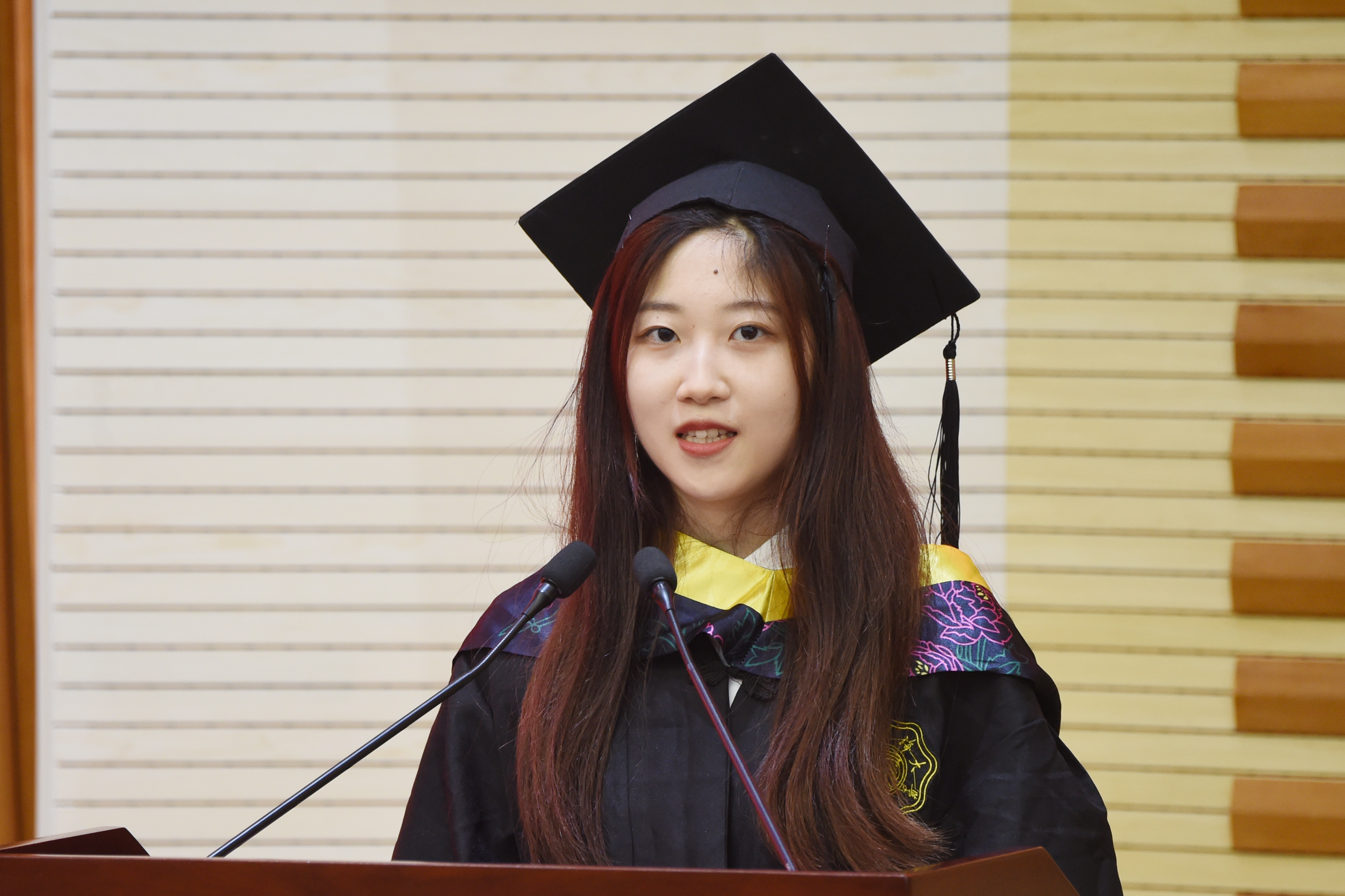 博士毕业生代表郁舒阳、本科毕业生代表渠谢雨表达了对老师们悉心培养的感激和对母校蓬勃发展的祝愿,表示以后会心系家国,接续奋斗,谱写青春奋斗之歌。