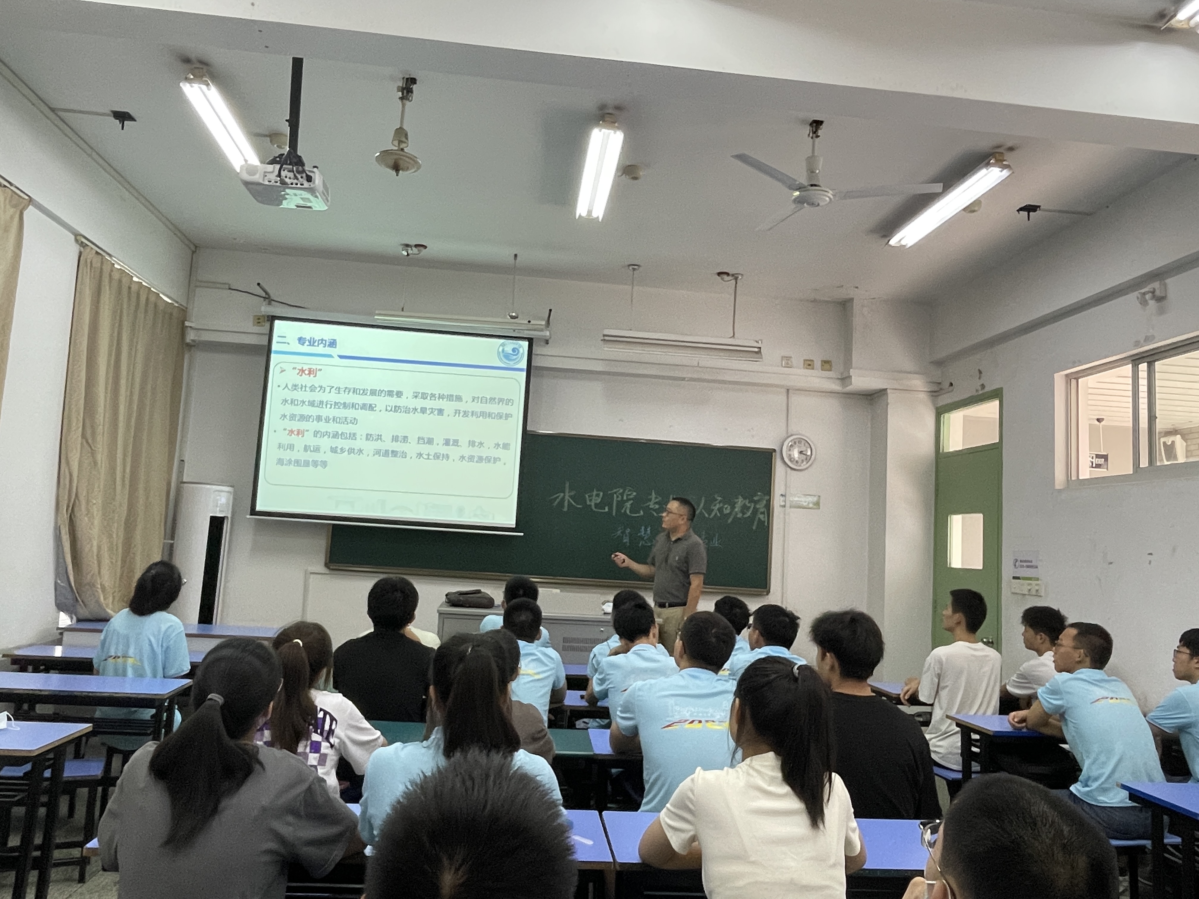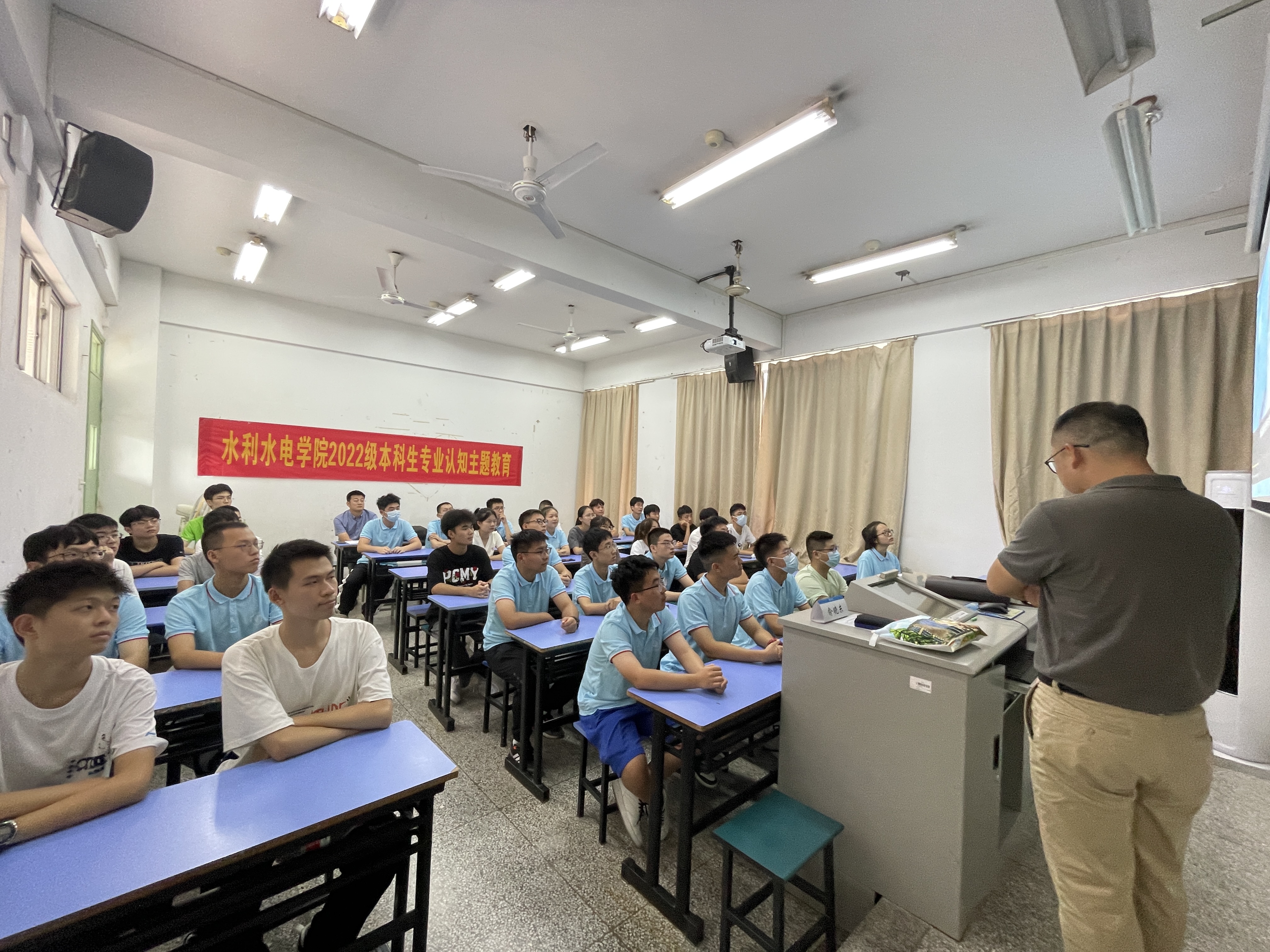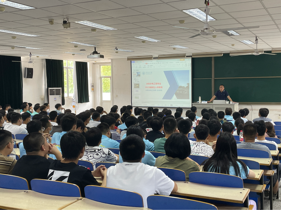 8月29日,性爱直播 开展水利水电工程专业和智慧水利专业专业认知教育主题讲座。水利水电工程专业系主任刘永强教授、智慧水利专业俞晓东教授、22级辅导员姜帆老师出席讲座,全体22级本科新生参加大会。大会由22级辅导员姜帆主持。