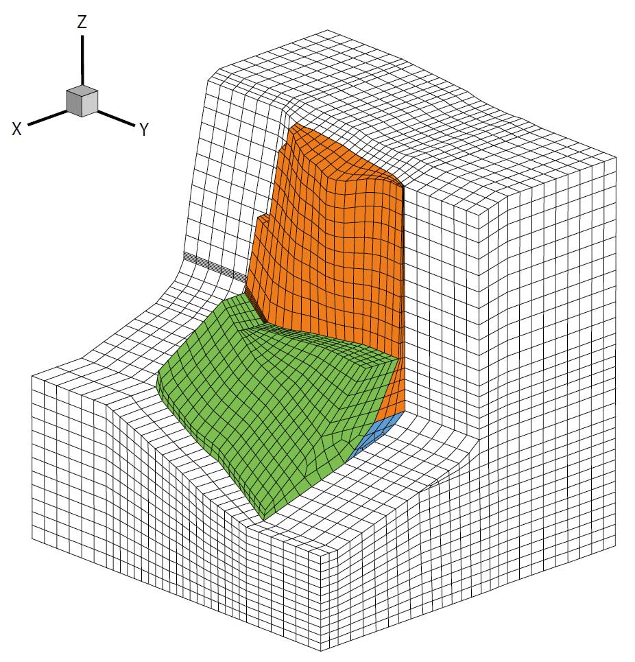 提出了边坡稳定安全系数弹塑性有限元迭代解法,及结合有限元强度折减法与非线性迭代解法的边坡稳定有限元混合解法,克服了边坡安全系数受人为因素影响大的缺陷。首创了基于分区有限元与块体界面元静力混合解法的强度折减法,大幅提高了局部位移不连续问题的计算精度和效率,实现了对边坡静力的稳定精准高效分析。