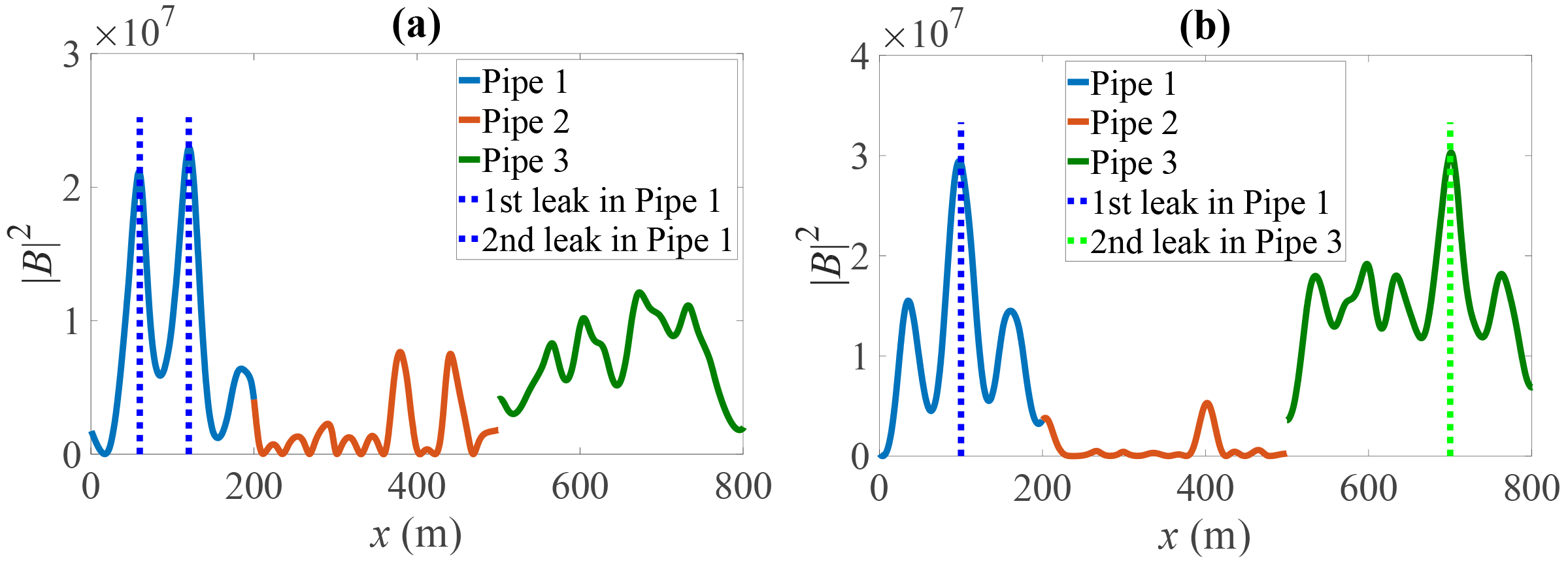 研究团队瞄准国际水力学领域极具挑战性的前沿课题——复杂供水管网系统的泄漏定位,并取得了一系列突破性进展。主要包括:(1)针对复杂管网拓扑结构下的多路径波传播效应,首次从理论上严格推导了管网水锤波解析模型,揭示了水锤波与泄漏及不同管网结构之间的多重耦合机理(Che et al.,2022a);(2)针对系统噪声和不确定性引发的病态反演问题,从理论上证伪了经典Tikhonov正则化方法,提出了低信噪比下不适定频率信息的消除策略,实现了复杂干扰下泄漏的精准定位(Che et al.,2022b);(3)针对埋地管网难以布置大量感知设备,建立了新型管网水锤波解析模型,突破了所有边界必须加装传感器的技术瓶颈,极大地提升了该方法的实用性和适用性(Che et al.,2022c)。