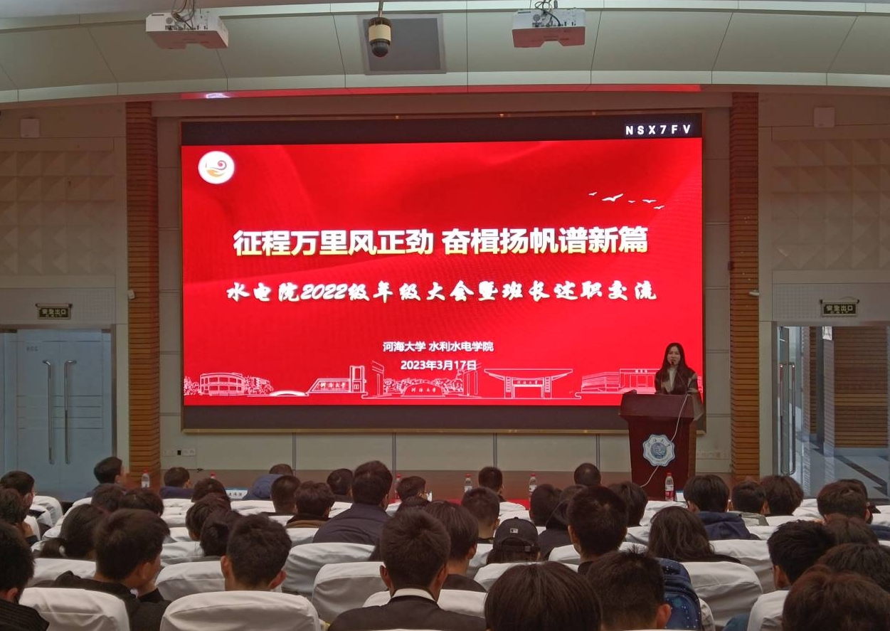 会上,姜帆总结了22级各班上学期的学习情况,对各科期末考试成绩及挂科情况进行了详细的分析和解读。她指出,大一是奠定学业成绩的关键阶段,良好的学习成绩基础对未来的大学生活至关重要,在面对相对困难的课程时更不能轻言懈怠。她鼓励同学们要寻找志同道合的学习伙伴,主动请教专业老师和优秀学长姐,争做卓越出色的水电学子。姜帆老师根据各科考试情况,为同学们梳理了获得毕业证和学位证的条件、各类型课程学分的修读情况、第二课堂学时考核指标等。同时,姜帆再次严肃强调了考风考纪,提醒同学们要遵守学校的规章制度,重视“诚信应考”。
