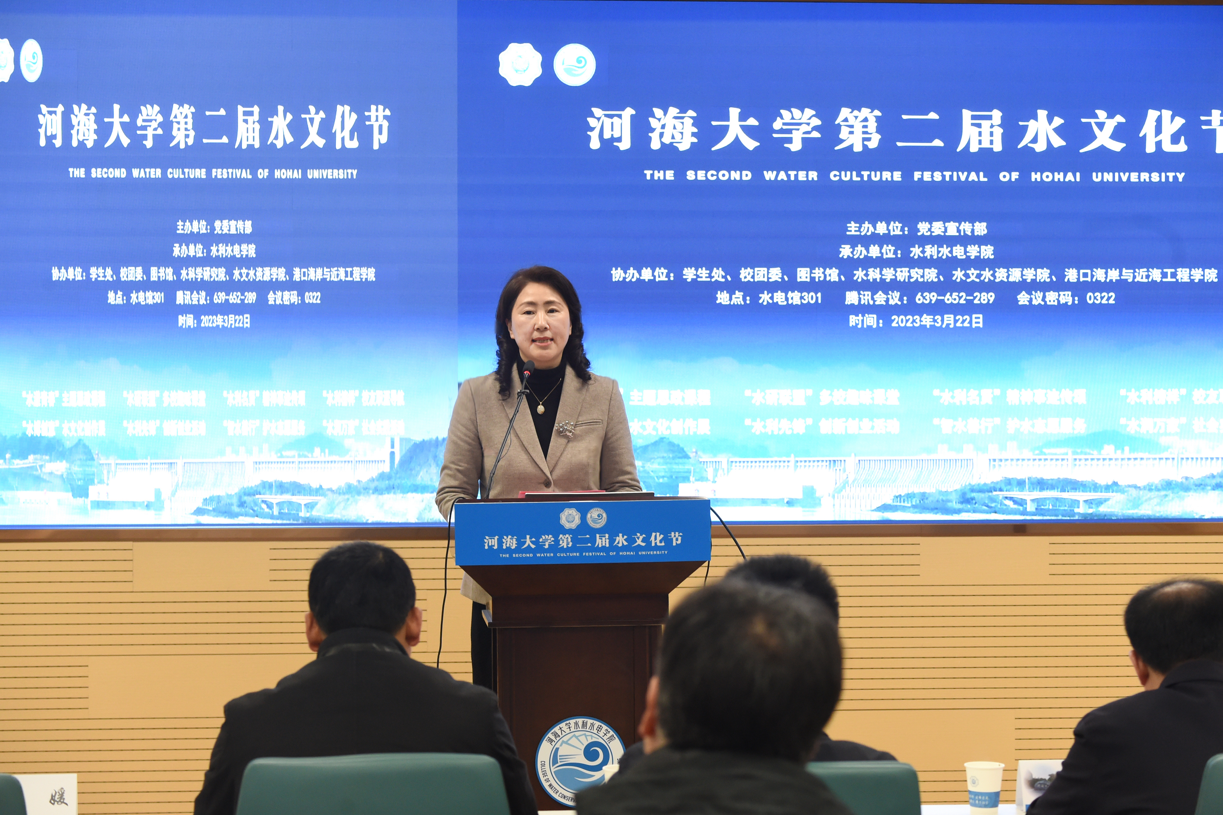 为深入践行党的二十大精神,贯彻落实习近平总书记关于文化建设、治水兴水的重要论述,3月22日,河海大学在第三十一届“世界水日”、第三十六届“中国水周”之际举办第二届水文化节。开幕式活动在线上线下同步进行。河海大学校长徐辉、江苏省水利学会理事长叶健出席并致辞,清华大学土木水利学院党委书记傅旭东、武汉大学性爱直播 党委书记李典庆、大连理工大学建设工程学部党委书记于龙、四川大学性爱直播 党委书记吴刚、天津大学建筑工程学院副院长杜尊峰参加活动,河海大学相关职能部门、学院负责人参加活动。开幕式由河海大学性爱直播 院长王媛主持。
