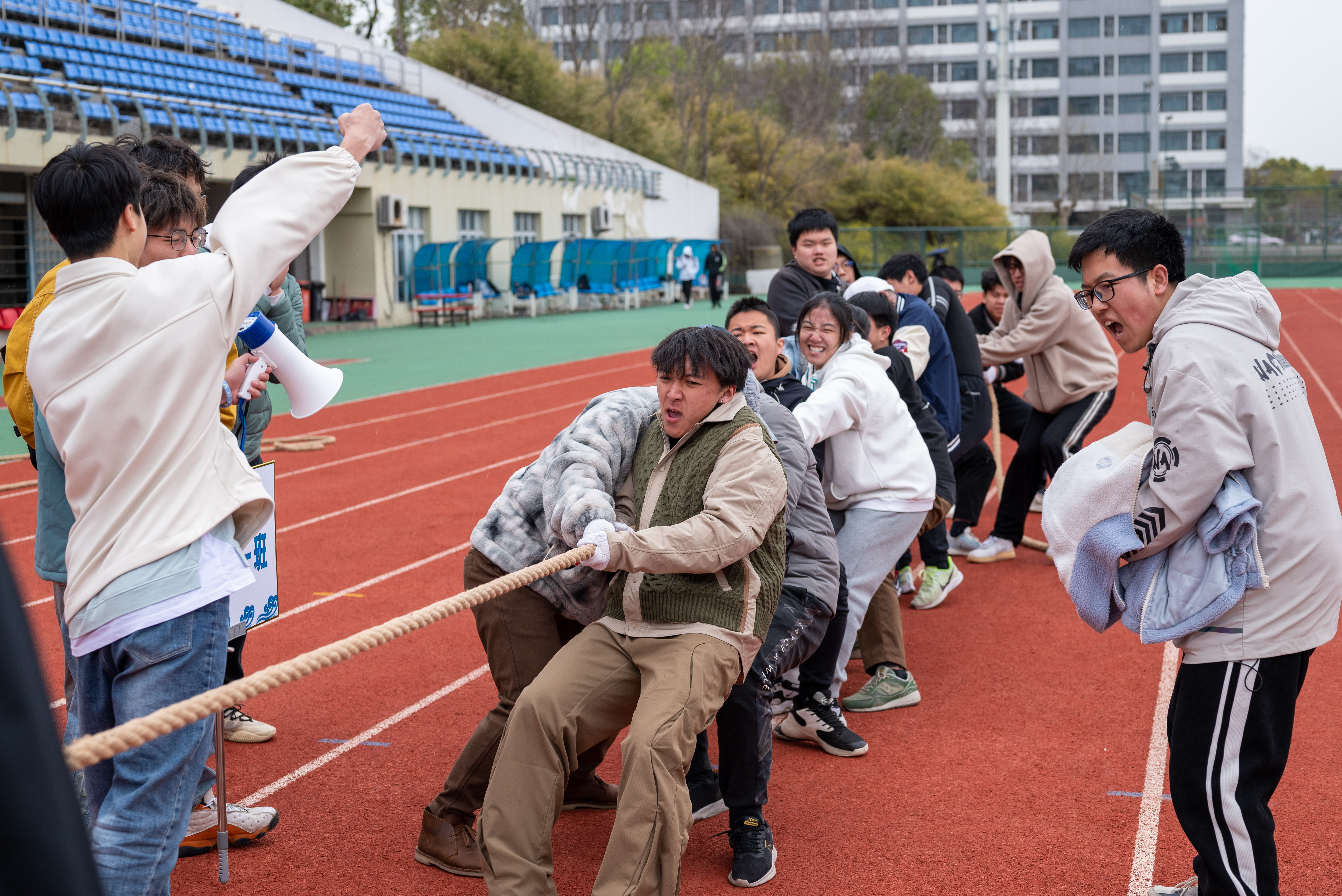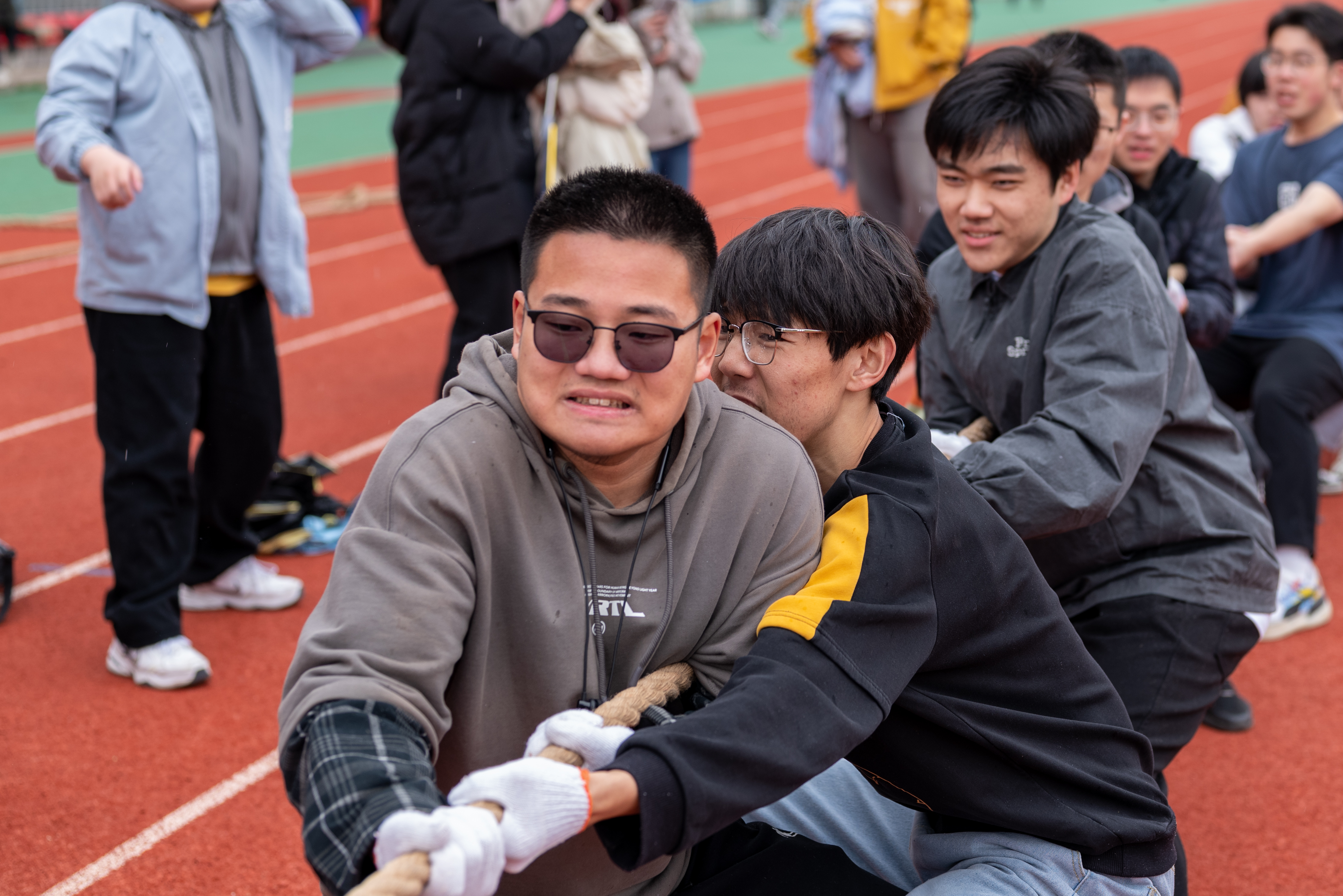 伴随着热烈的掌声,体育节第一个项目——“凝心聚力,绳采飞扬”春季拔河比赛正式开始,2021级、2022级共计14个班级组成参赛队伍参加比赛。经过各支队伍的奋勇拼搏和激烈的竞争,在多场“拉锯式”较量后,2022级水工2班和2022级水工3班突出重围,进入决赛,争夺比赛的冠军。最终2022级水工2班获得春季拔河比赛冠军,2022级水工3班获得亚军,2021级水工1班获得季军。
